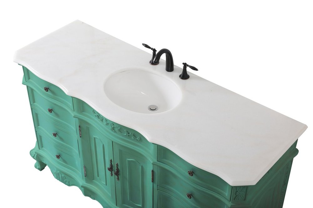 Comes with an off-white marble top with slight brown veining and bevel edge design, please note that due to the natural characteristics of the stone, the color and/or pattern of each countertop may vary from the pictures.
