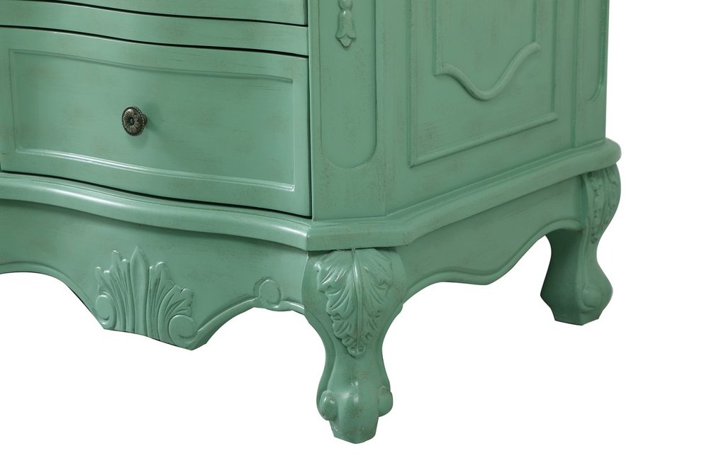 Hand painted in vintage mint finish with distress paint application