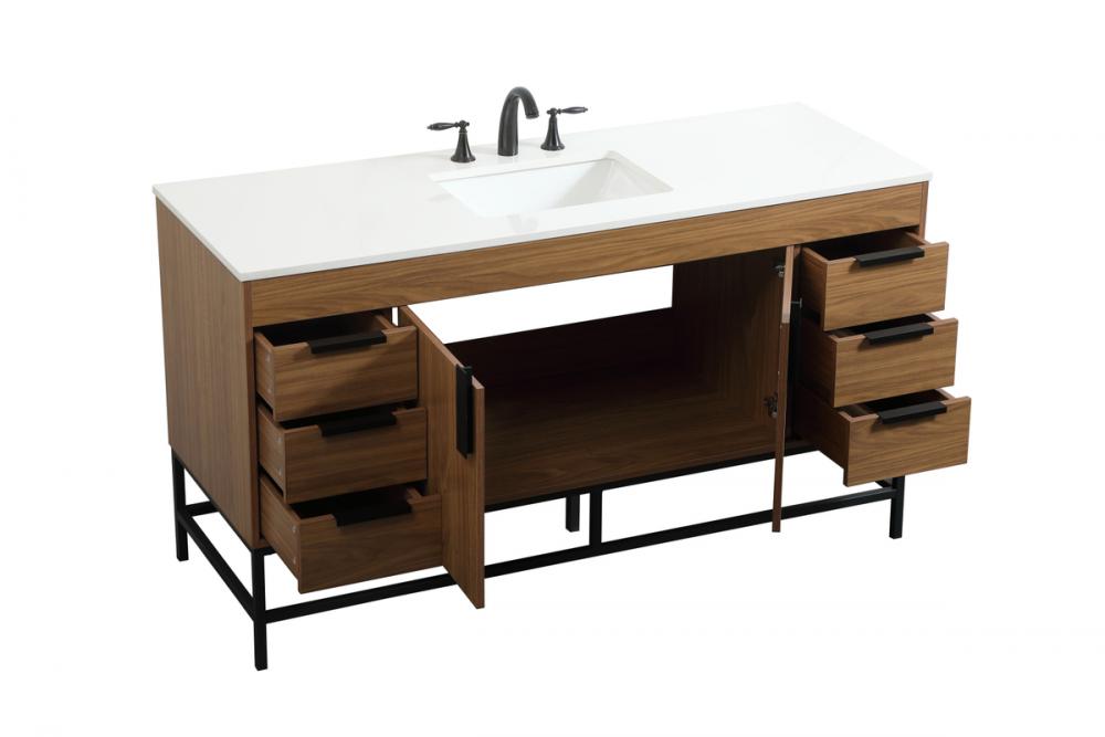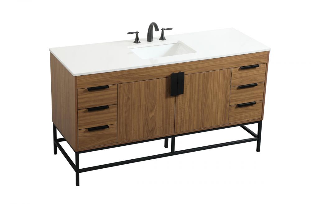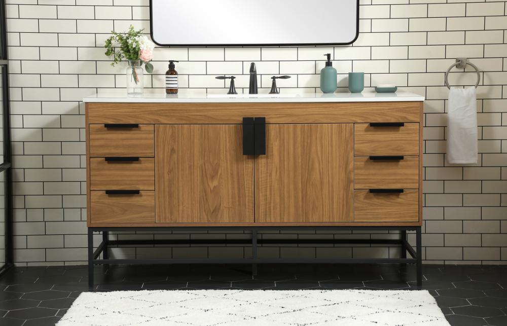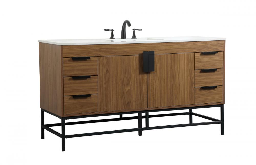 60 inch Single bathroom vanity in walnut brown