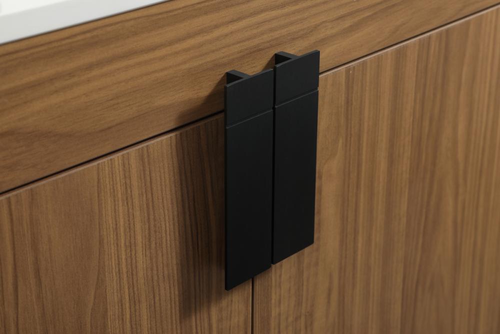 Oversized modern handles accentuates the smooth mdf wood base