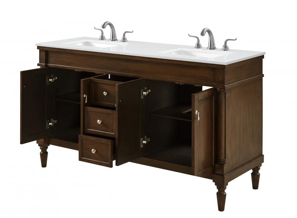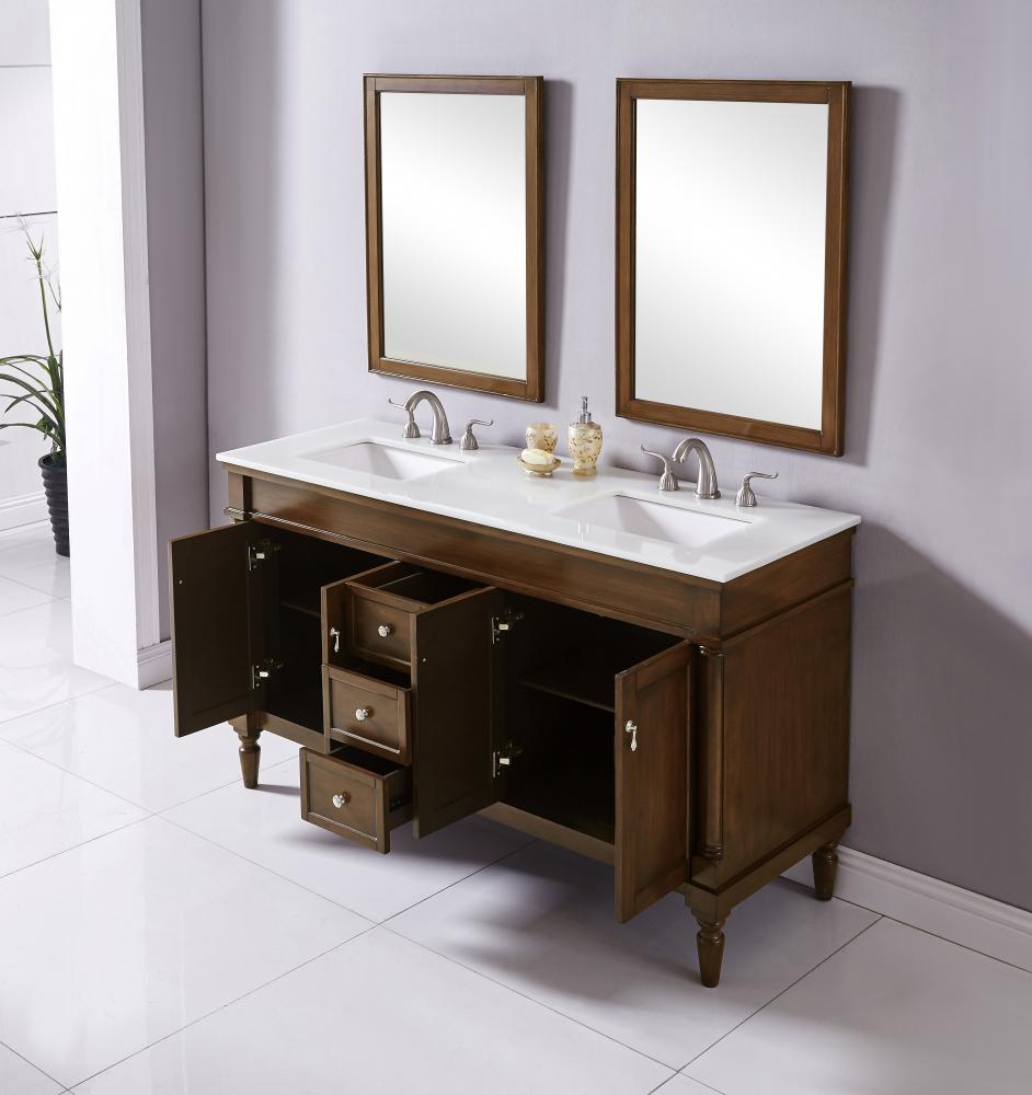 The subtle beauty of the Lexington collection exudes comfortable luxury. Its modern, yet traditional beauty will surely dress up your bathroom or powder room without any fuss. The ivory white engineered marble countertop with a porcelain undermount sink shows quiet opulence, and the legs support upright without fail. Durable hardware complements the refined hand painted finish, with pulls adorning the two cabinet doors and ornate knobs dressing the drawers, showcasing ample storage space within. Whether this vanity is in your bathroom or for guests, its presence will surely elevate the aesthetics of your room.