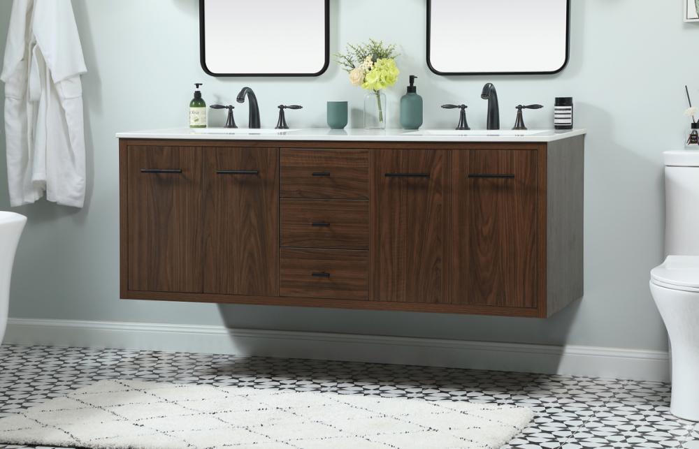 Vanity can be wall mounted without the solid wood legs or install as a freestanding unit