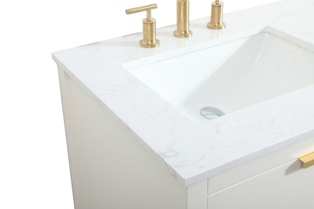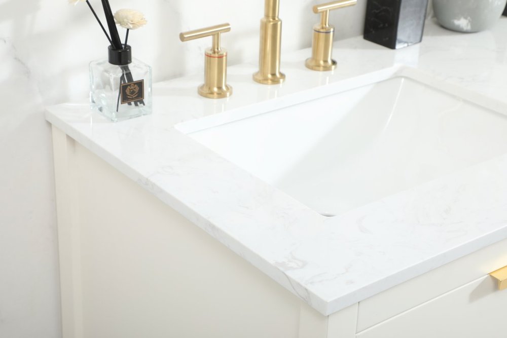 Comes with an undermount porcelain sink and a durable calacatta engineered marble stone top