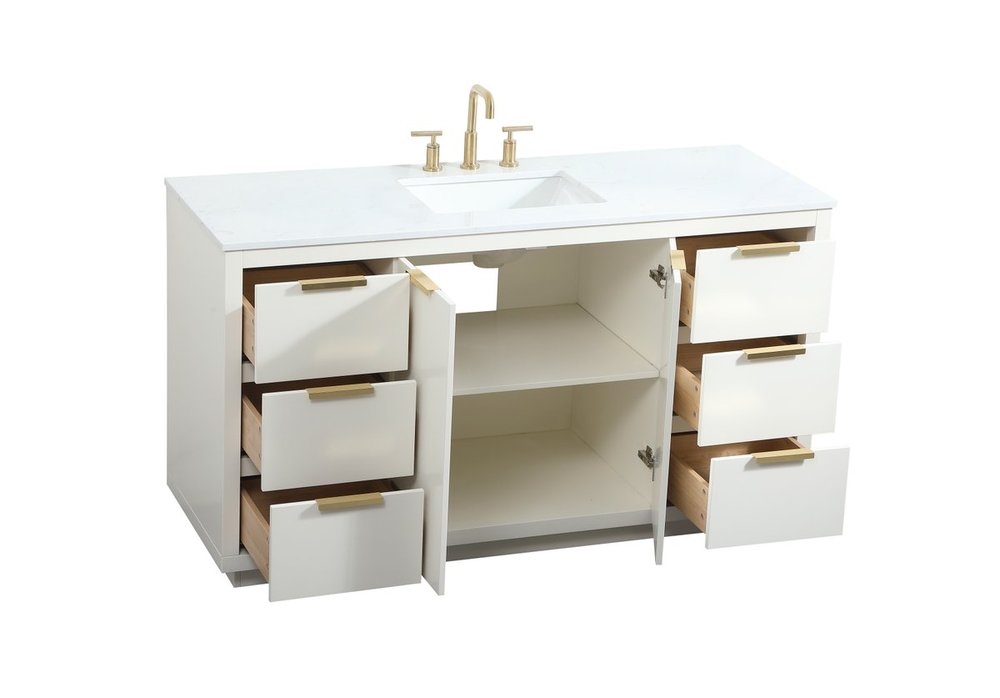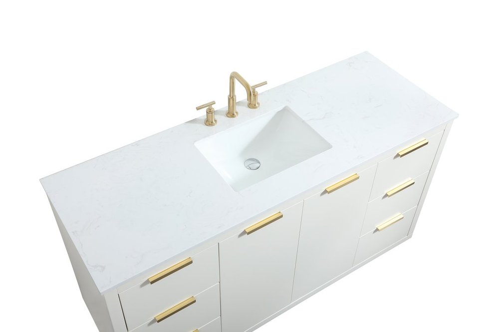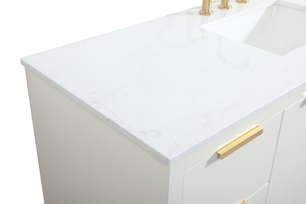 Comes with an undermount porcelain sink and a durable calacatta engineered marble stone top