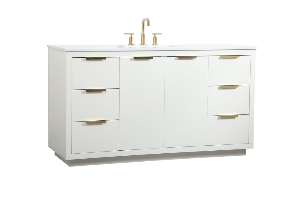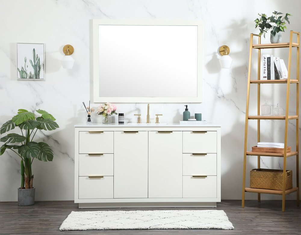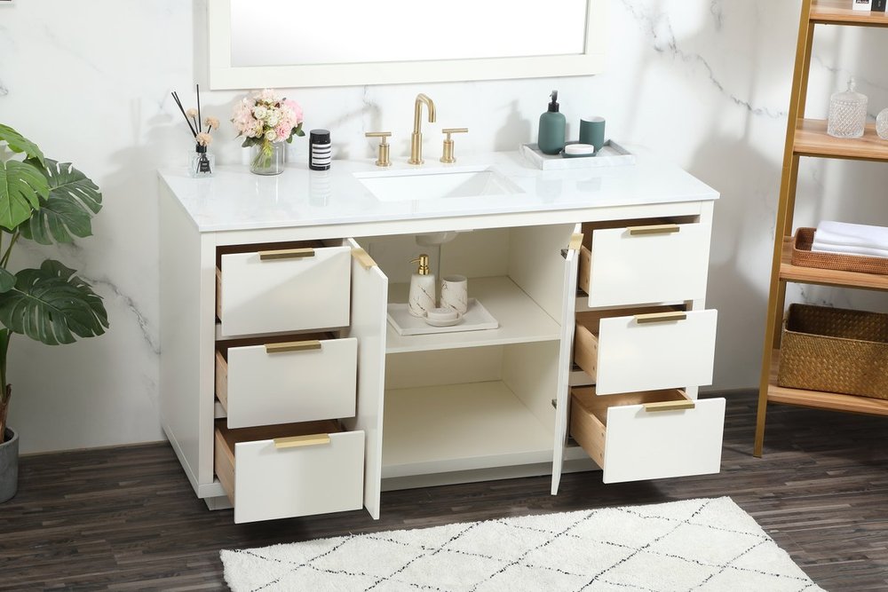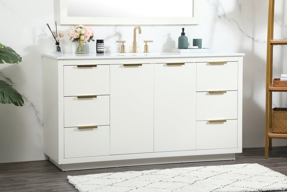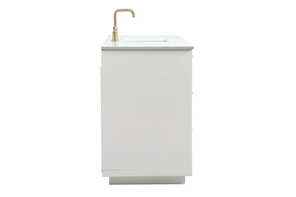 The Blake collection vanity cabinet will be a modern furniture statement piece in your bathroom. Our color combination creates a calming atmosphere in the room. The gold handles bring a vibrant touch to balance the vanity. With the simplistic clean lines, the cabinet catches eyes with its beautiful smooth surface. Open the cabinet doors to store what you desire and make use of the spacious area. Gently close the door and the soft closing glides will quietly closes the door. To top it off, the calacatta engineered marble adds a luxury and modern finish to the durable stonetop.