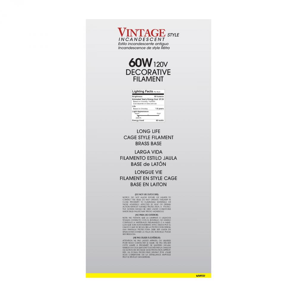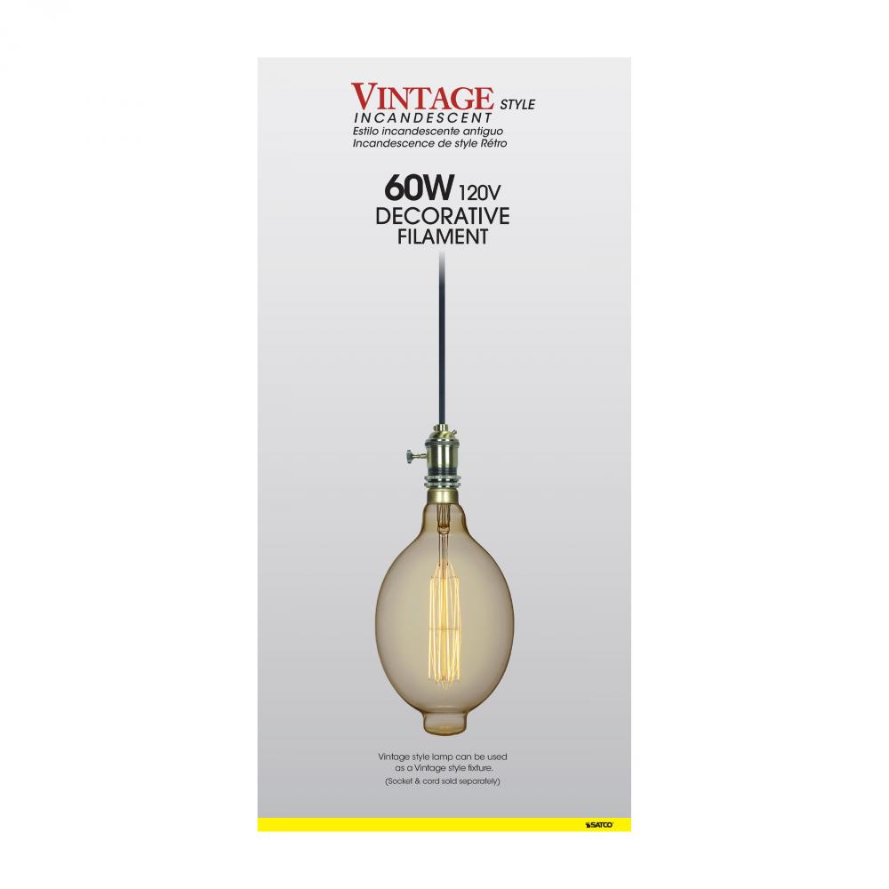 60 Watt BT56 Incandescent vintage style; Amber; 2000 Average rated hours; Medium Base; 120 Volt