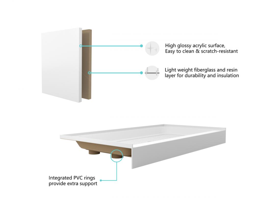 Crafted from high-quality acrylic, our shower base is built to last, ensuring long-term durability and a luxurious look in your bathroom.