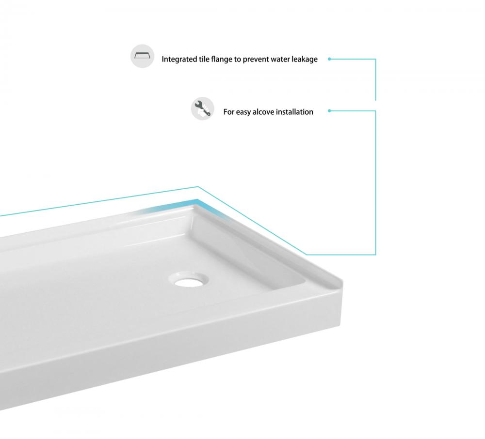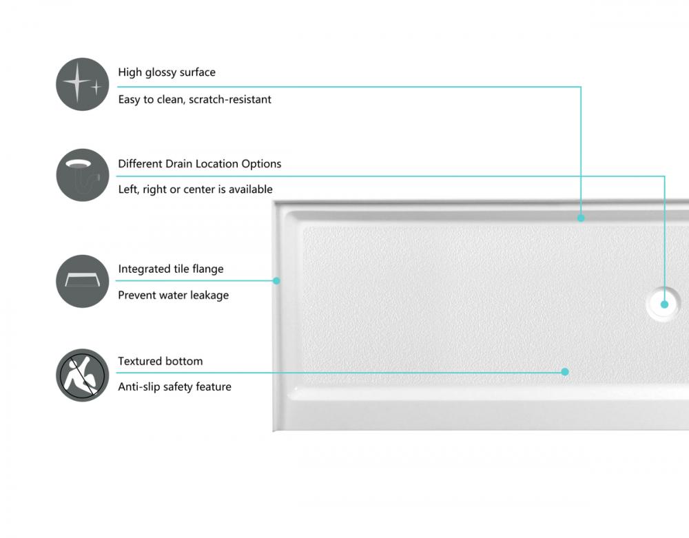 The clean and modern rectangular shape of our shower base complements any bathroom décor, adding a touch of elegance to your space. with three drain location configurations ( left, right, and center) to choose from, this makes a perfect choice!