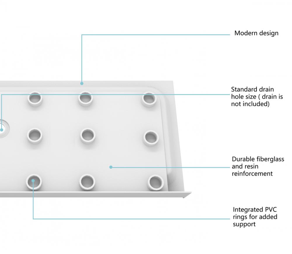 With a floor slope of 1%-2.5%, our shower base ensures efficient water drainage, preventing puddles and maintaining a clean and dry shower environment.