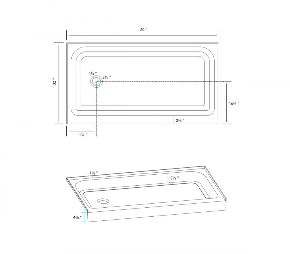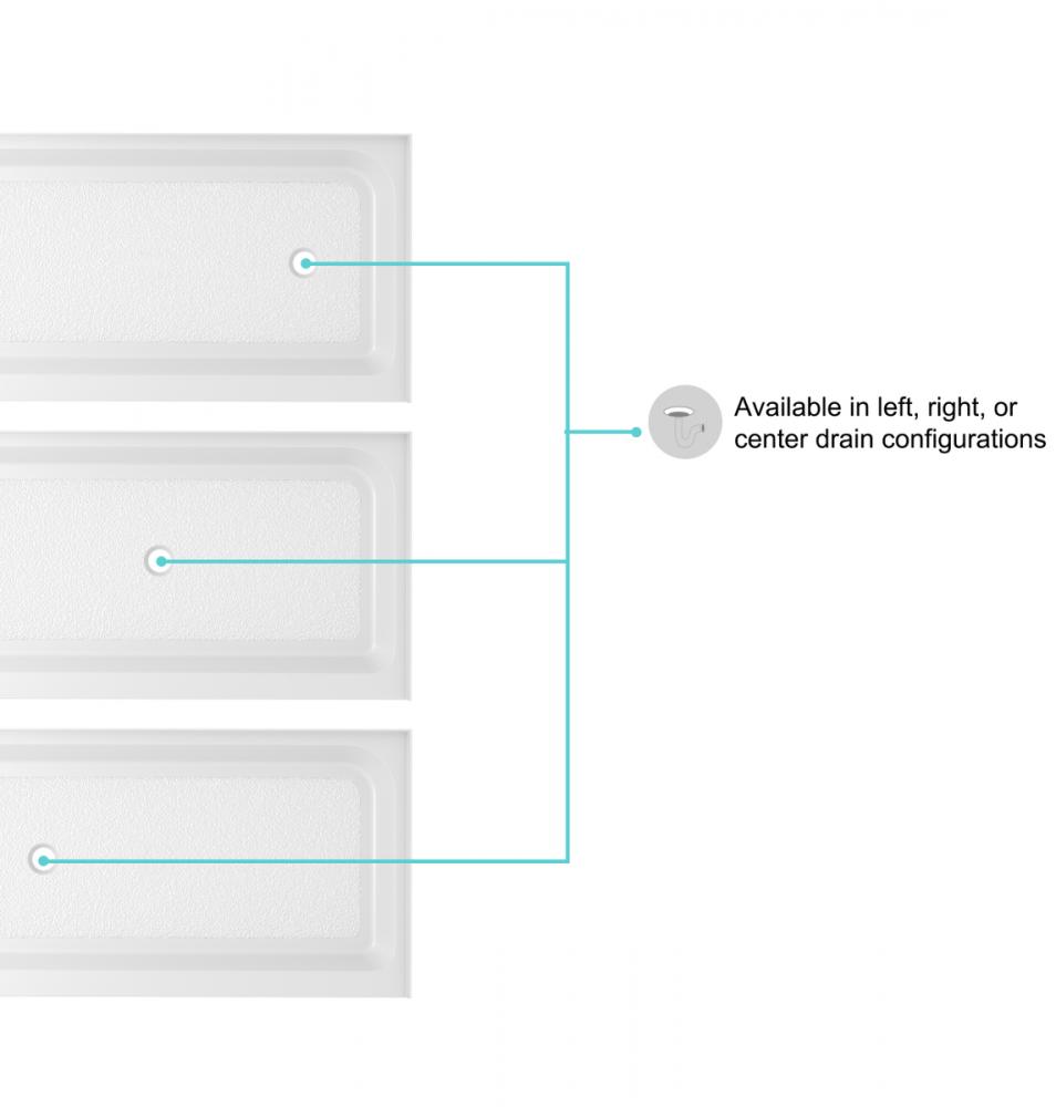 The clean and modern rectangular shape of our shower base complements any bathroom décor, adding a touch of elegance to your space. with three drain location configurations ( left, right, and center) to choose from, this makes a perfect choice!
