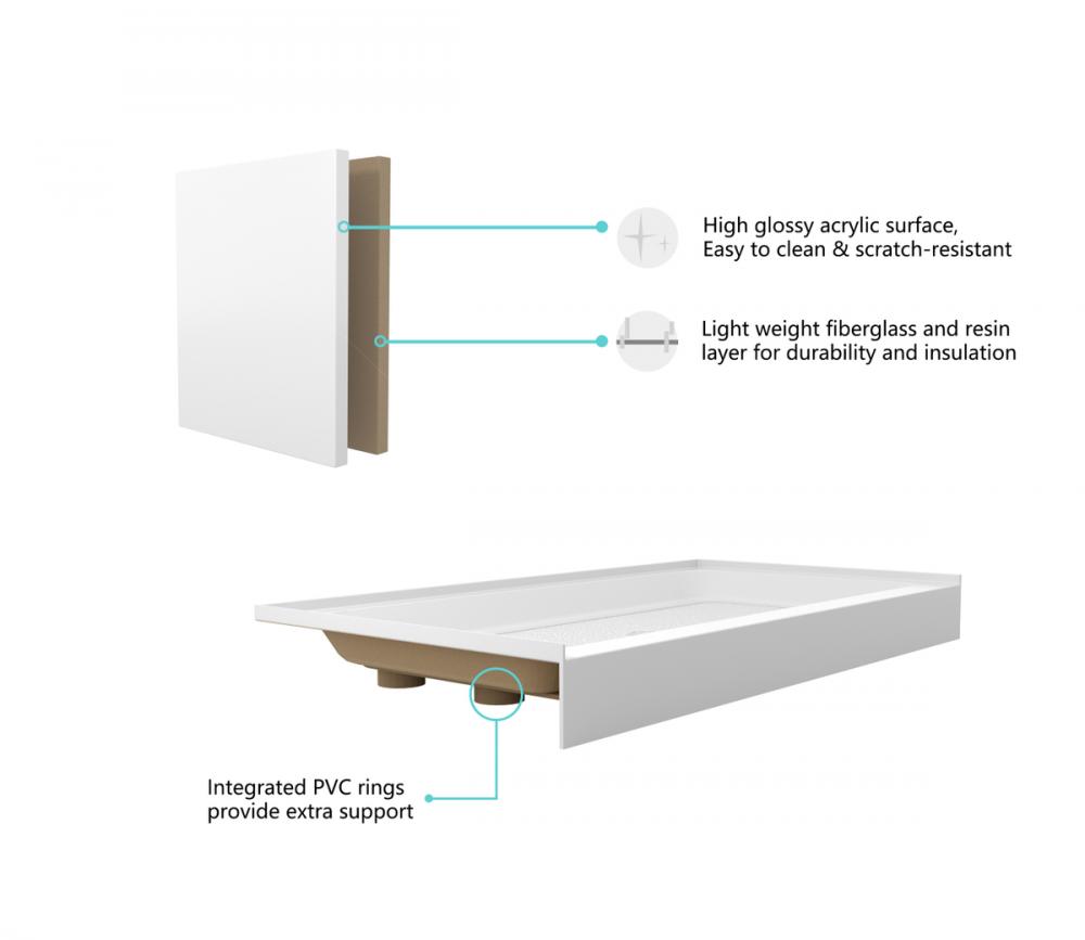 Crafted from high-quality acrylic, our shower base is built to last, ensuring long-term durability and a luxurious look in your bathroom.