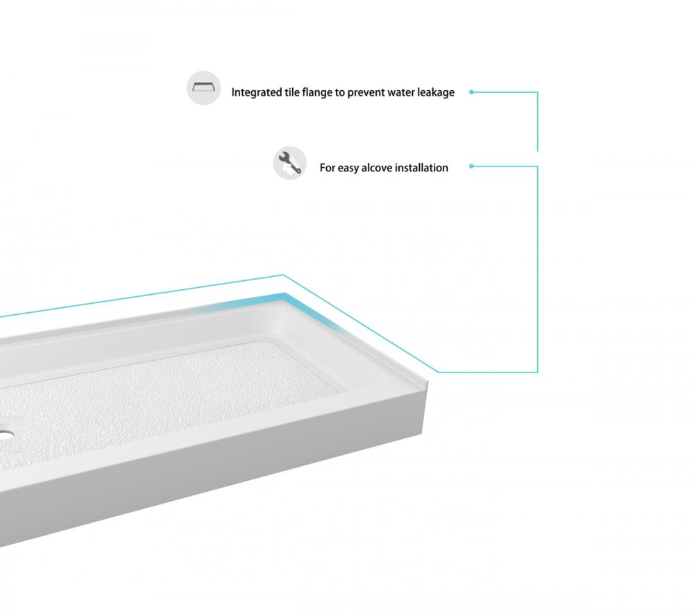 Upgrade your bathroom with our acrylic single threshold alcove shower base in glossy white and enjoy the perfect blend of style, safety, and quality for years to come! This rectangular masterpiece not only adds a touch of contemporary luxury to your space but also ensures top-notch safety and durability. Available in multiple sizes and three drain configurations (left, right, and center).
