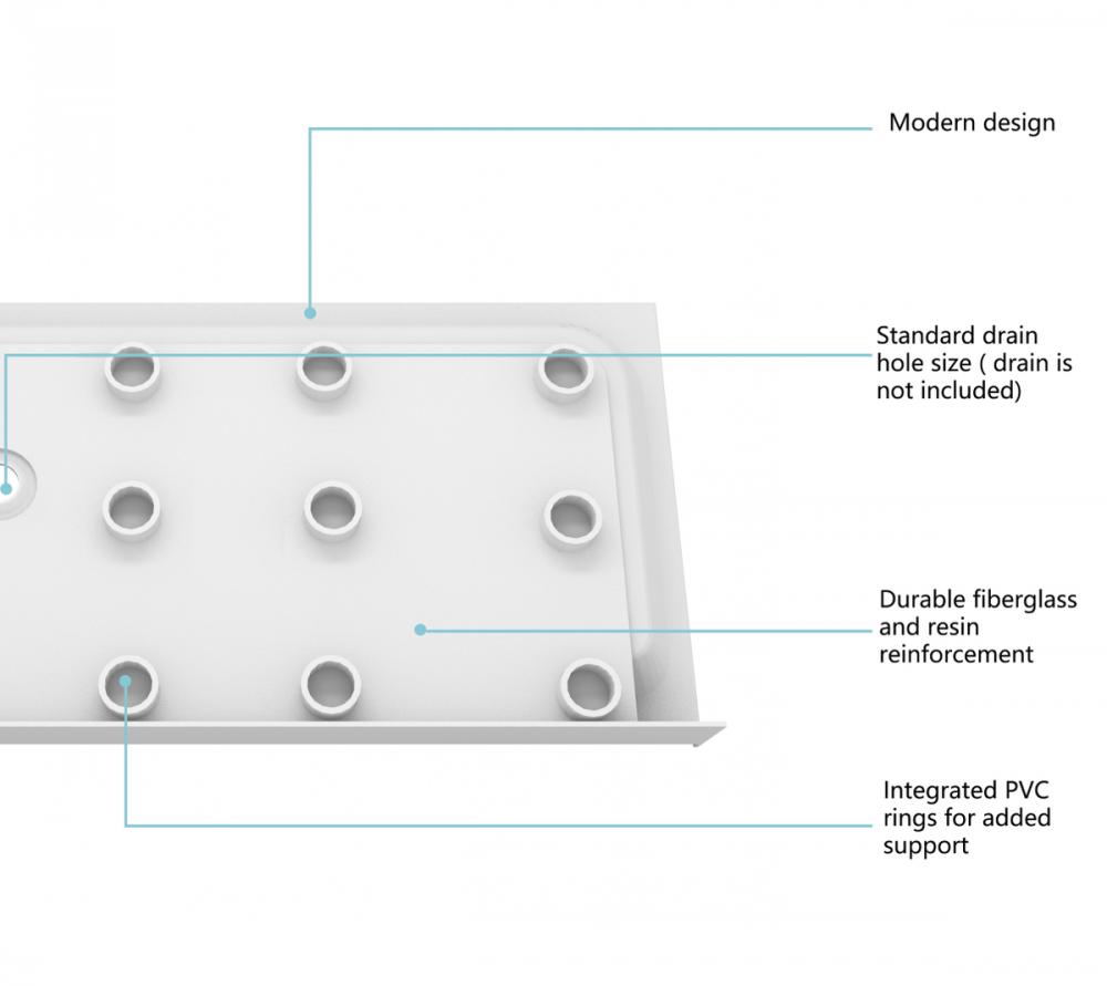 With a floor slope of 1%-2.5%, our shower base ensures efficient water drainage, preventing puddles and maintaining a clean and dry shower environment.
