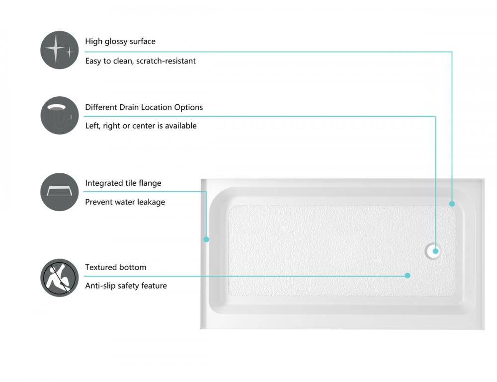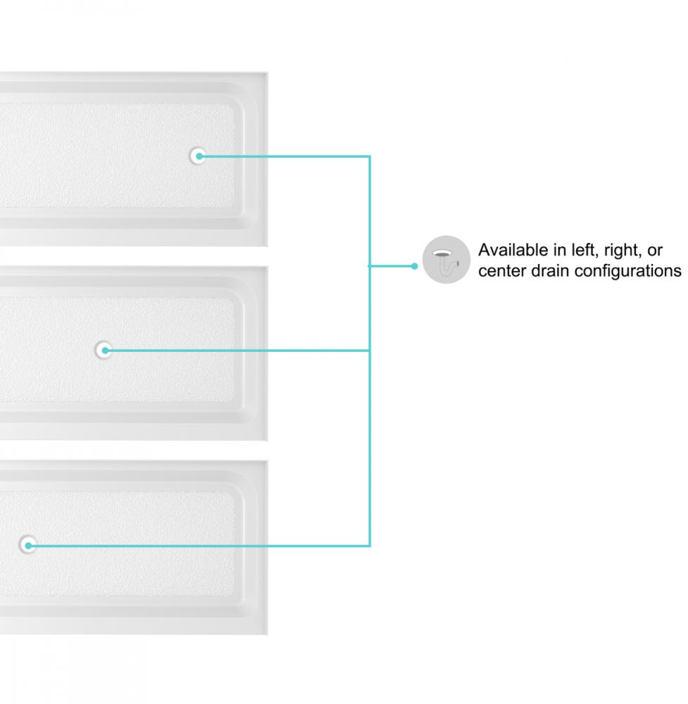 The clean and modern rectangular shape of our shower base complements any bathroom décor, adding a touch of elegance to your space. with three drain location configurations ( left, right, and center) to choose from, this makes a perfect choice!