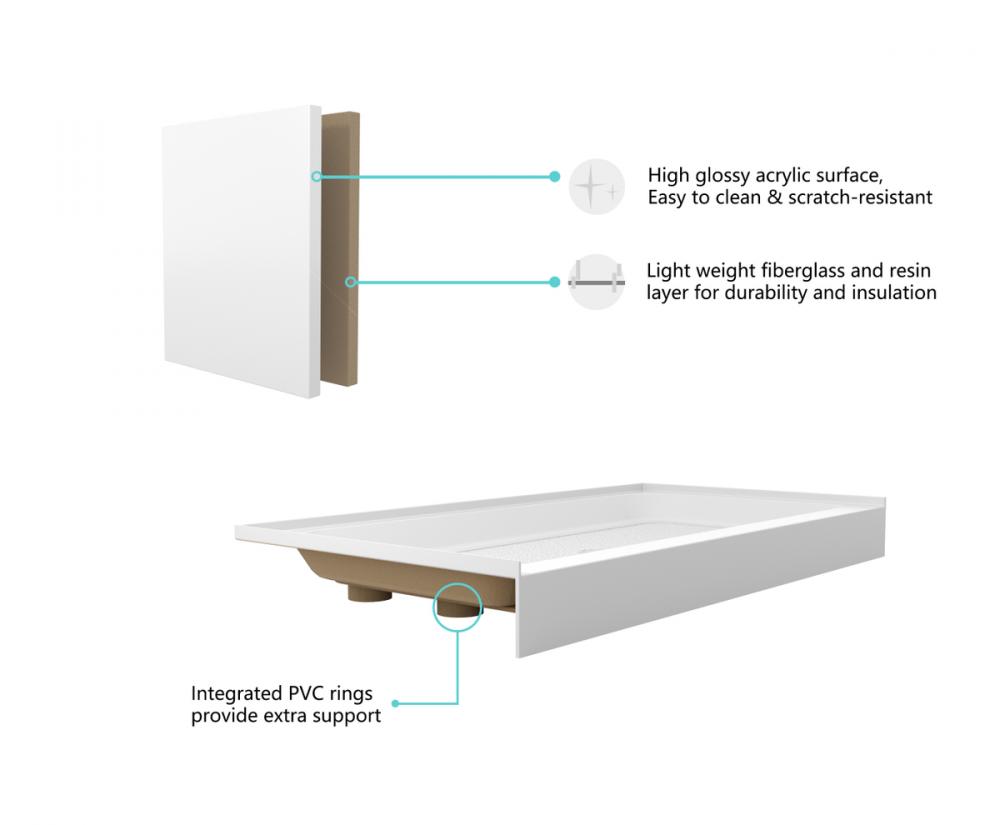 Crafted from high-quality acrylic, our shower base is built to last, ensuring long-term durability and a luxurious look in your bathroom.