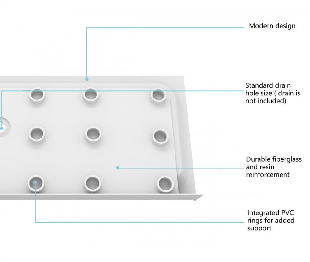 With a floor slope of 1%-2.5%, our shower base ensures efficient water drainage, preventing puddles and maintaining a clean and dry shower environment.
