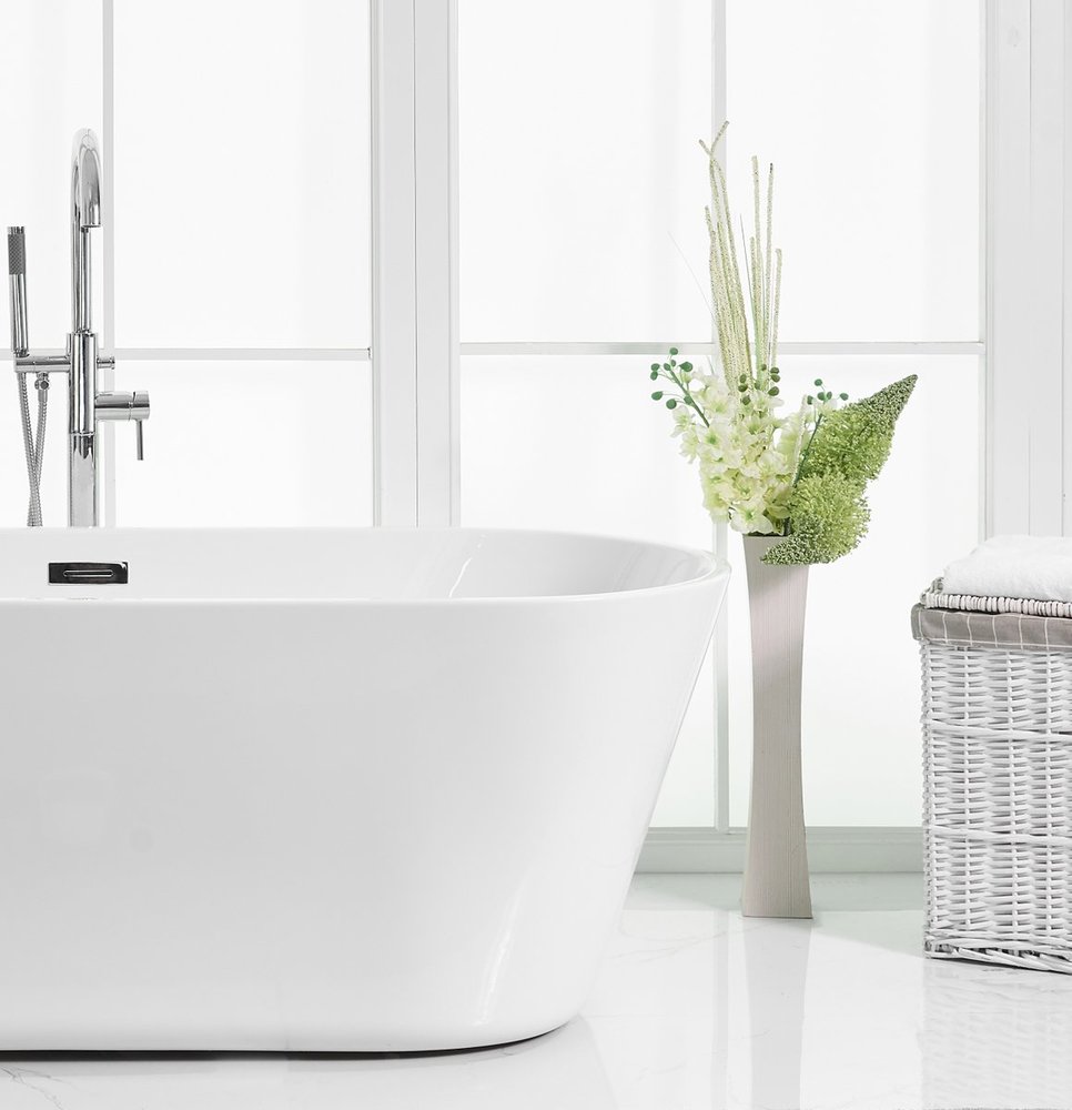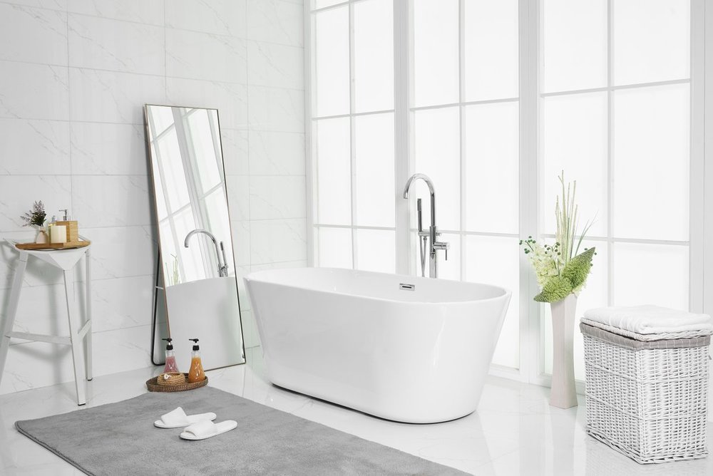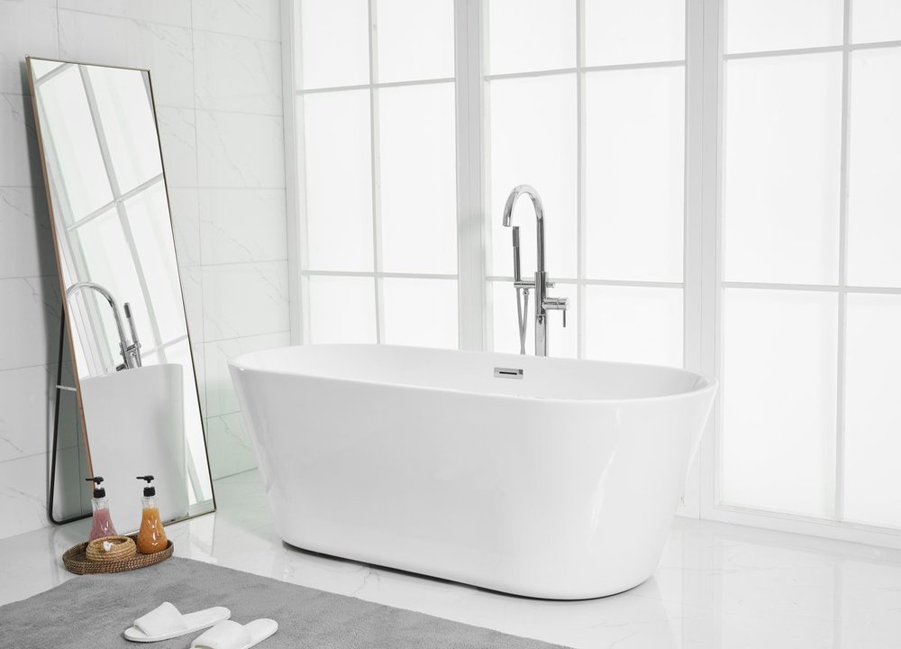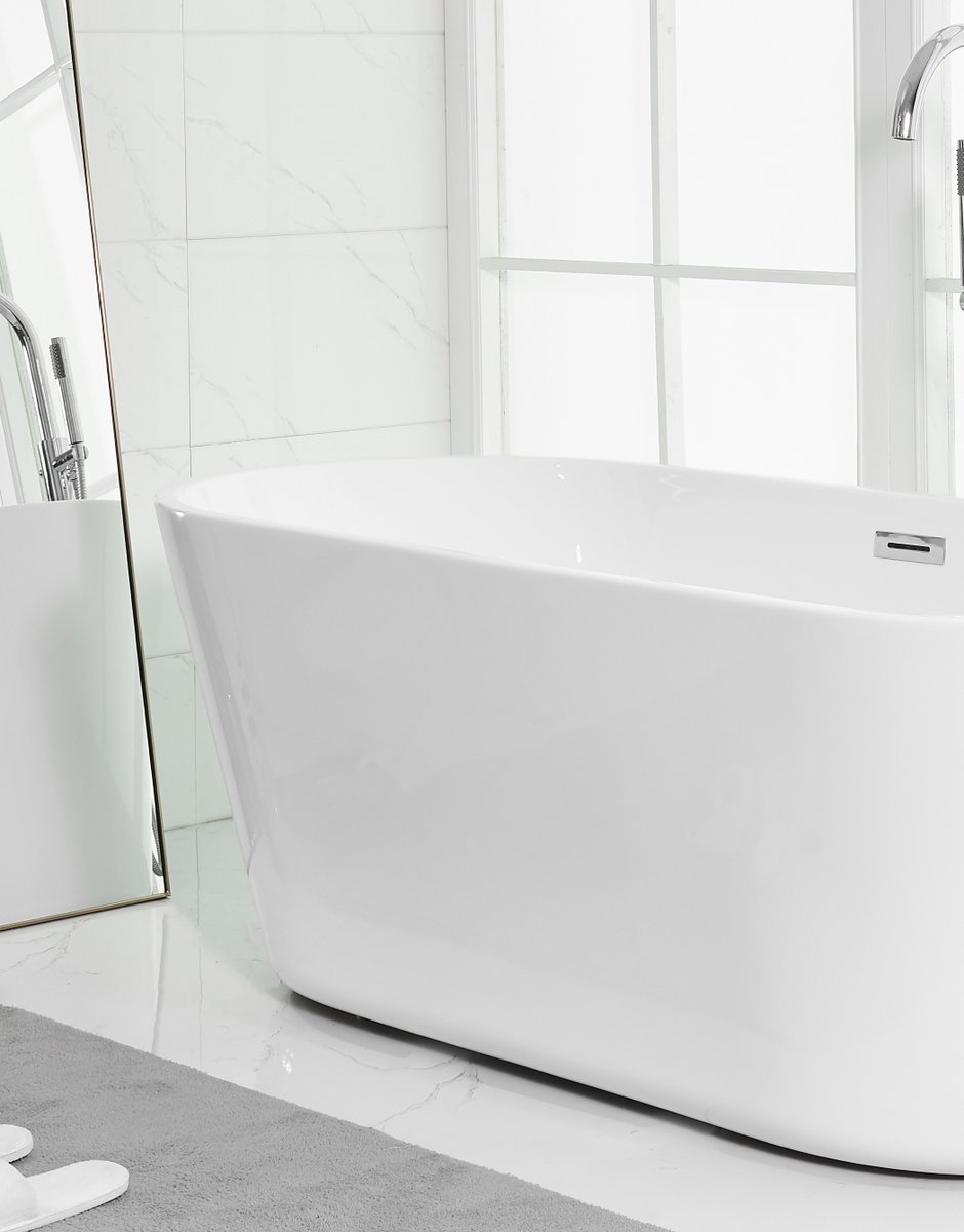 The curvature of this 59" roll top style bath tub allows for comfortable seating--and wouldn't you want to be as comfortable as possible while having a relaxing soak? The glossy white finish adds peaceful modernity to any bathroom--discard all your worries and bathe in elegance.