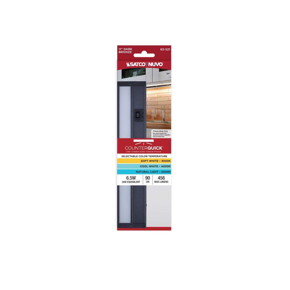 6.5 Watt 11-Inch LED Under Cabinet; 30K/40K/50K CCT Selectable; Dark Bronze; 120 Volt