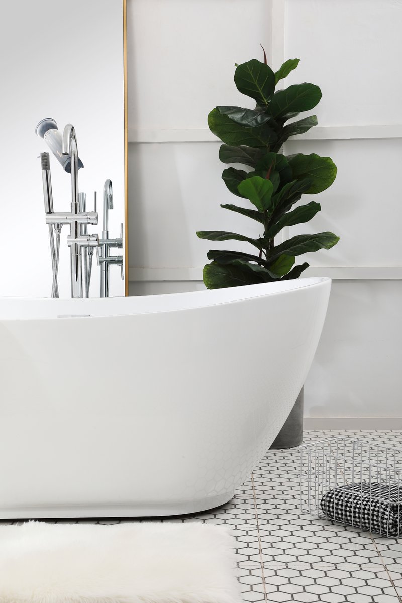 The curvature of this 67" slipper style bath tub allows for comfortable seating--and wouldn't you want to be as comfortable as possible while having a relaxing soak? The glossy white finish adds peaceful modernity to any bathroom--discard all your worries and bathe in elegance.