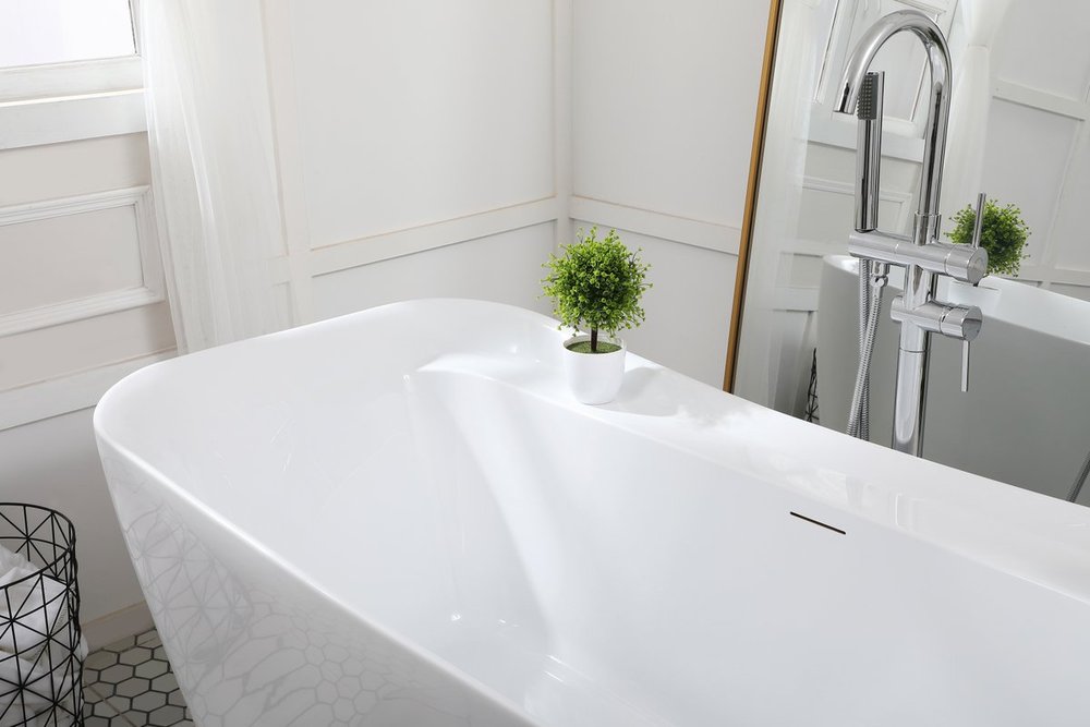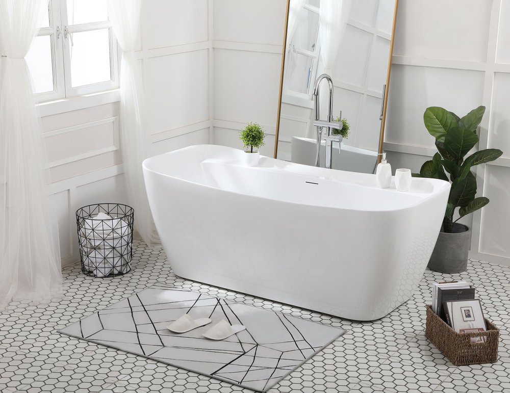 Take a soak in this spacious 67" free-standing bath tub and unwind from a stressful day. The glossy white exterior creates a contemporary sophistication, while the rectangle shape makes it a versatile fit for any room. You'll soon be wanting to take a relaxing warm bath every day!
