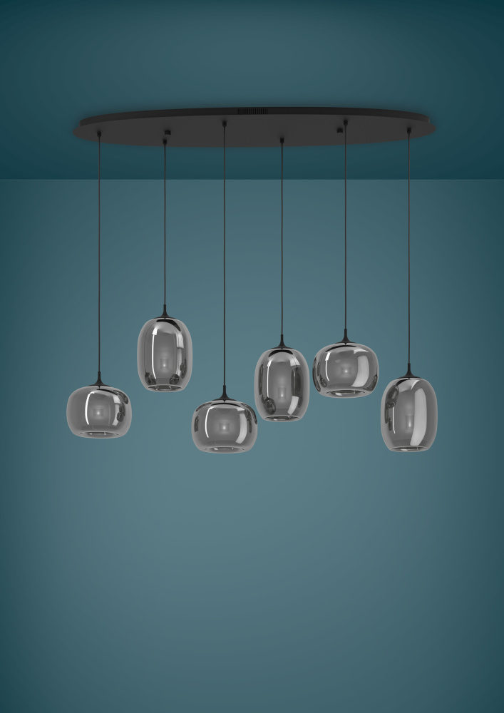 6 LT LED Linear Pendant w/ Black Finish & Smoked Glass Shades