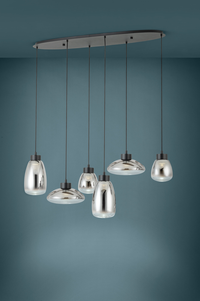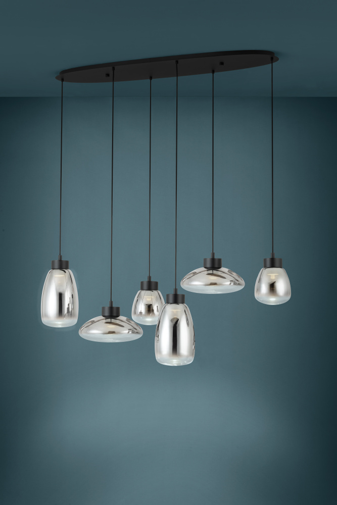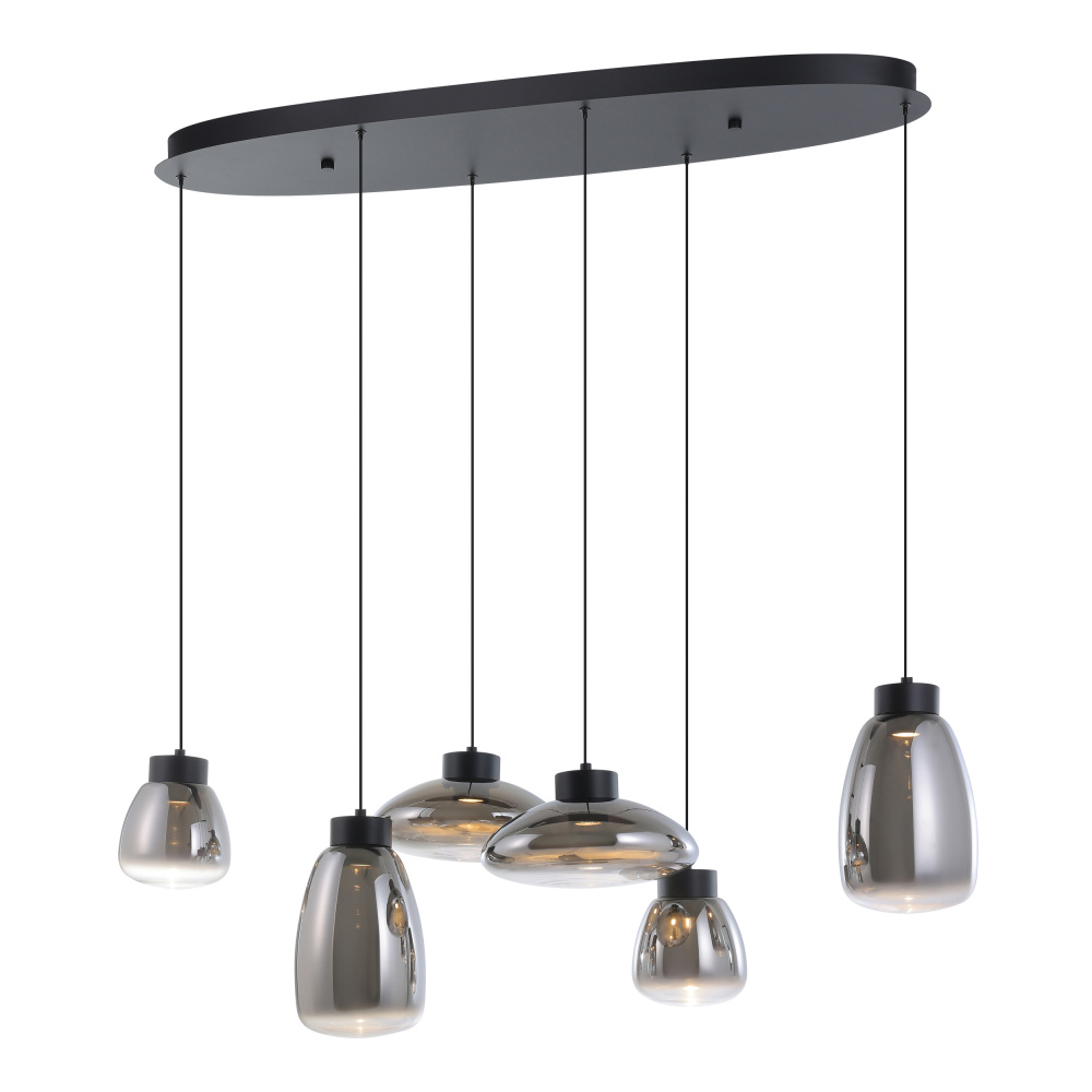 6 LT Linear Pendant w/ Black Finish & Chrome Smoked Glass Shades