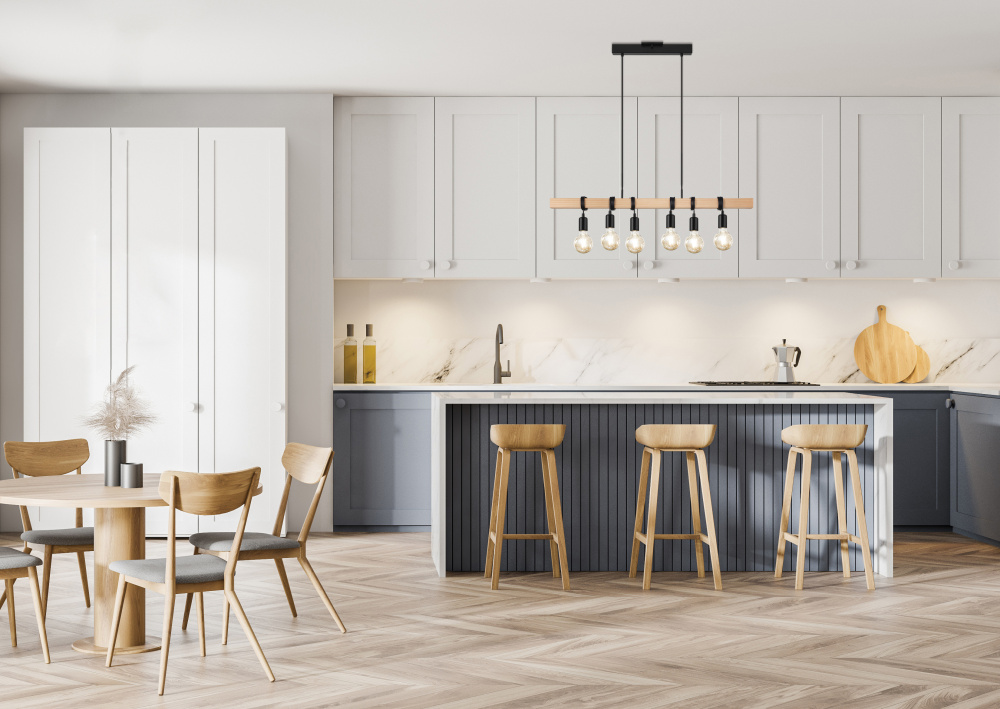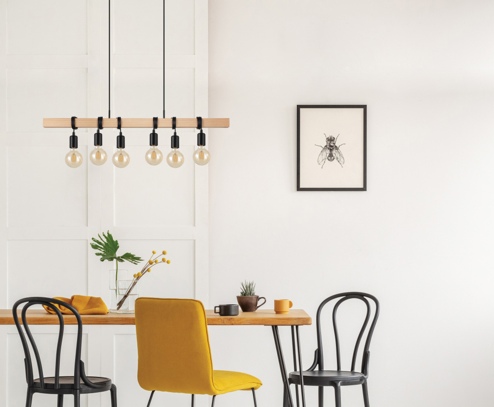 6 LT Open Bulb Linear Pendant w/ Black & Wood Finish