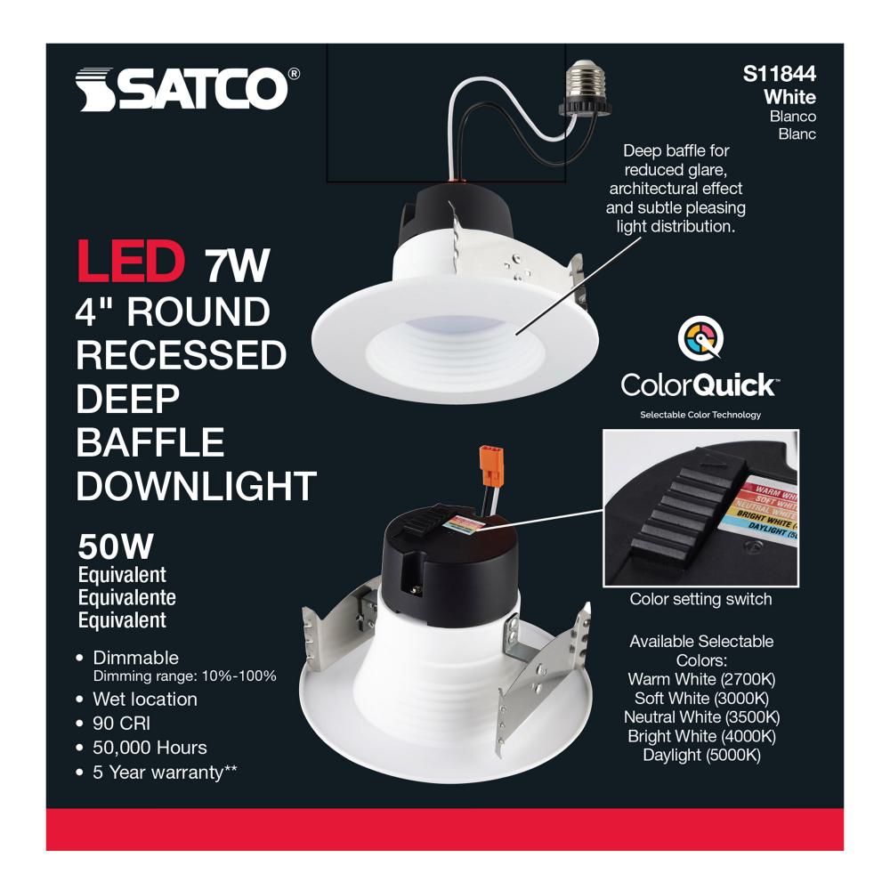 The Satco S11844, 7 watt, 4 inch recessed retrofit is designed with the architect in mind. It represents an elegant, value oriented, easy to install solution wherever more design is required, but without the harsh glare of standard downlight retrofits. Our