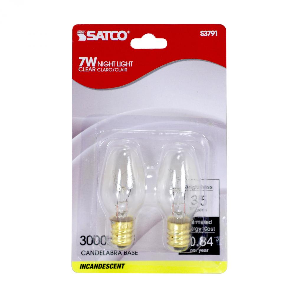 7 Watt C7 Incandescent; Clear; 3000 Average rated hours; 35 Lumens; Candelabra base; 120 Volt; 2-Card
