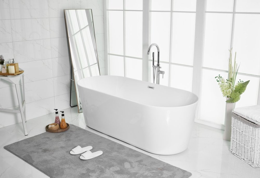 The curvature of this 70" roll top style bath tub allows for comfortable seating--and wouldn't you want to be as comfortable as possible while having a relaxing soak? The glossy white finish adds peaceful modernity to any bathroom--discard all your worries and bathe in elegance.