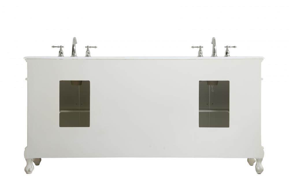 This superb balance of timeless tradition and opulent beauty in a engineered marble-topped vanity will certainly enhance the aesthetics of any home or office bathroom! Featuring an ivory white durable engineered marble countertop complimenting the hand painted cabinet with a delicate carved floral design, stands on stylishly carved solid wood French scroll feet. Don't let the design fool you, the engineered marble countertop and porcelain undermount sink allows for space to get ready, while the antique bronze hardware allows you to discover storage spaces with ease. You and your guests will marvel at this vanity that will both store away your bathroom essentials and enhance the aesthetics of your room.