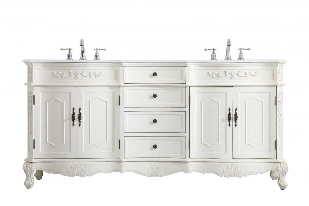72 inch Double Bathroom vanity in Antique White with ivory white engineered marble