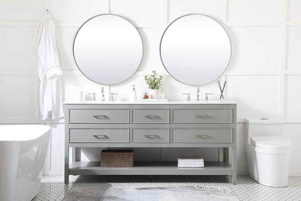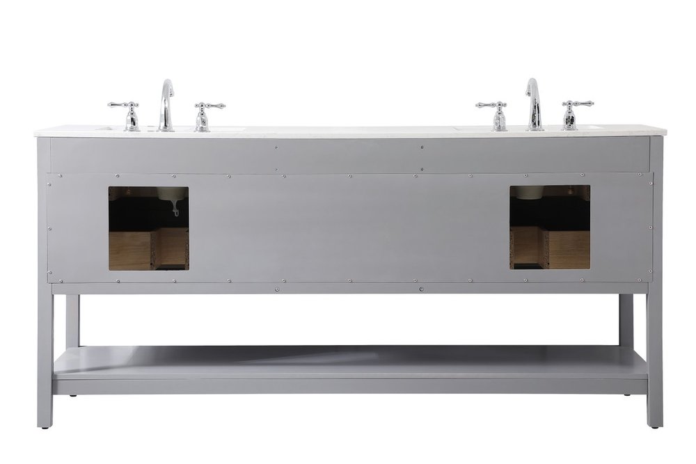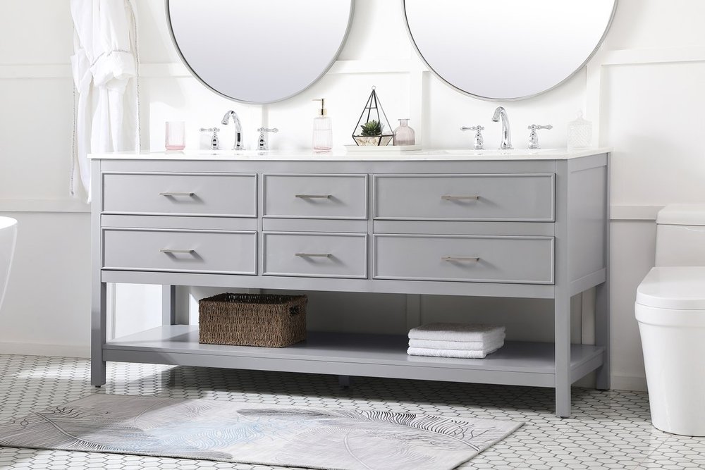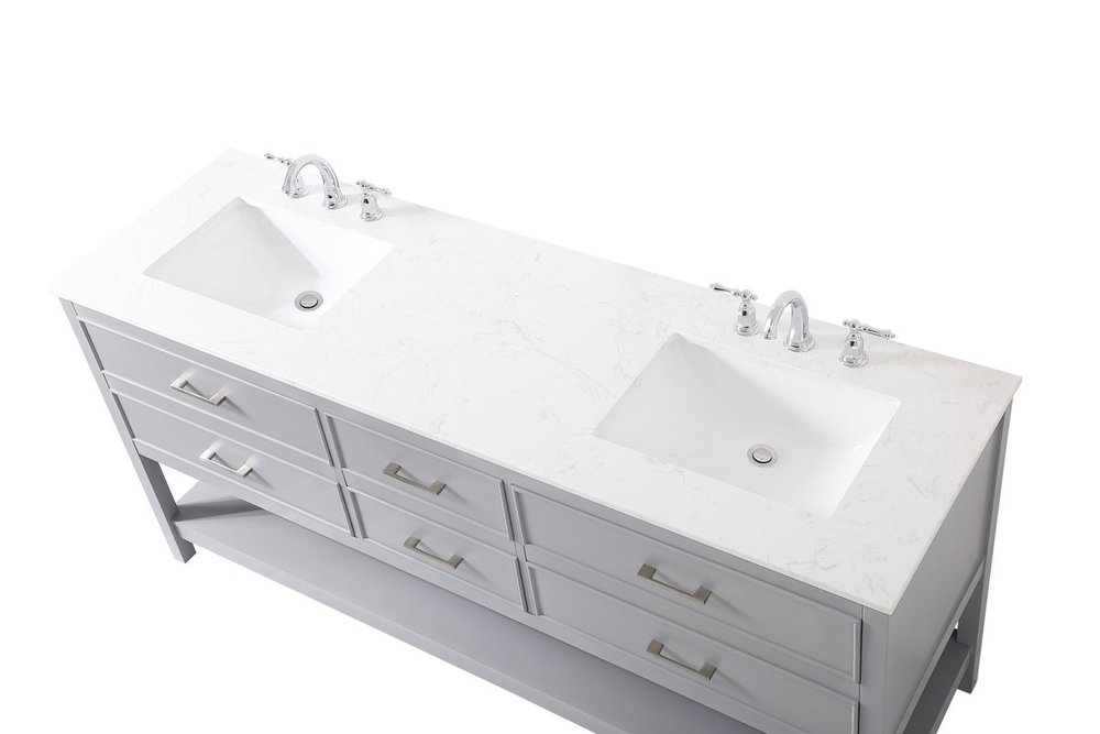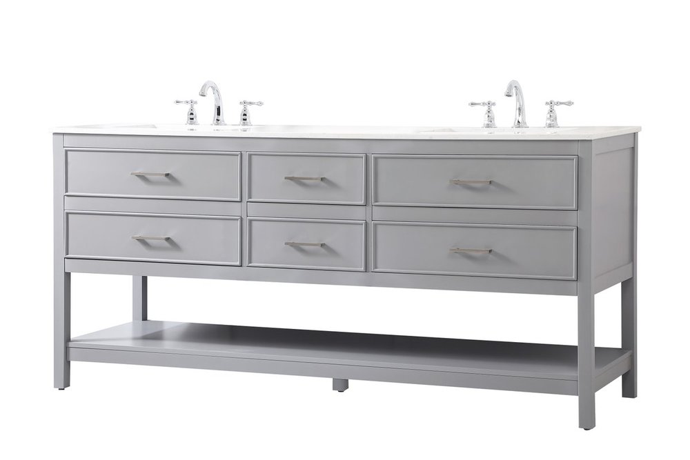 Make the most of your space with this traditional style bathroom vanity. Complements well with many aesthetics with its beautiful finish, calacatta engineered marble countertop, and the contemporary slender handle bar that sits on six functional drawers with soft closing mechanism, allowing you to store an assortment of bathroom essentials. The lower shelf makes it the perfect space to hold new towels for your guests. This compact vanity ensures both form and function in your bathroom or powder room for you and your guests.
