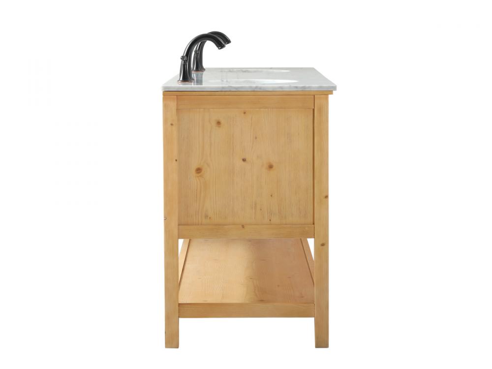 Comes with a double undermount porcelain sink and a carrara white marble countertop