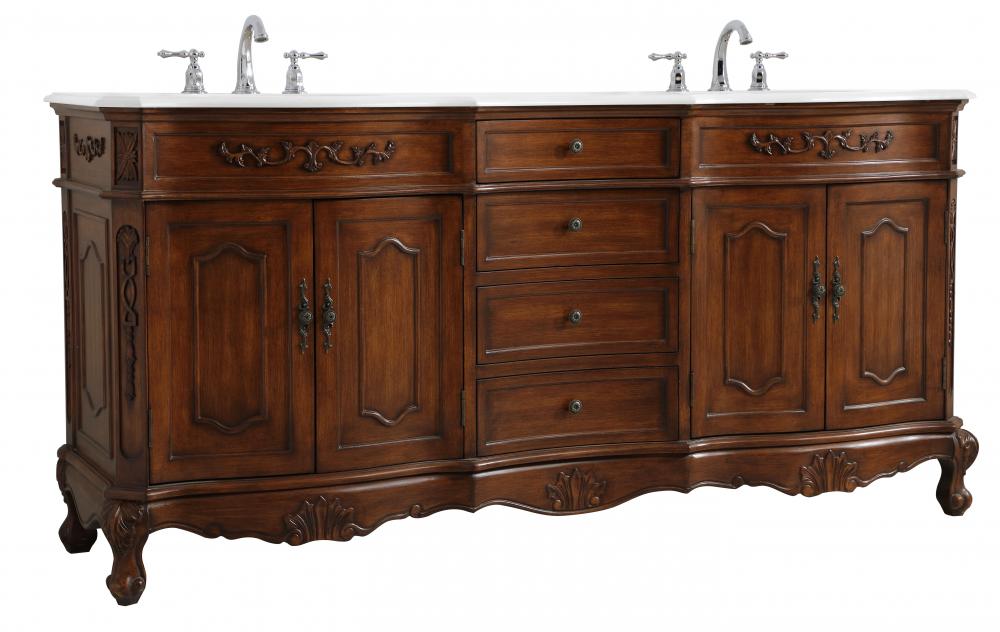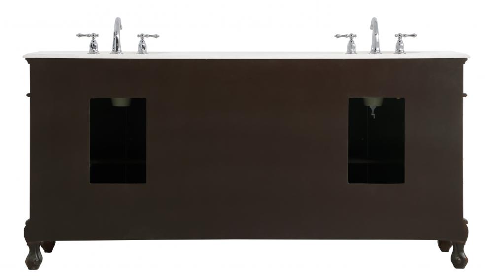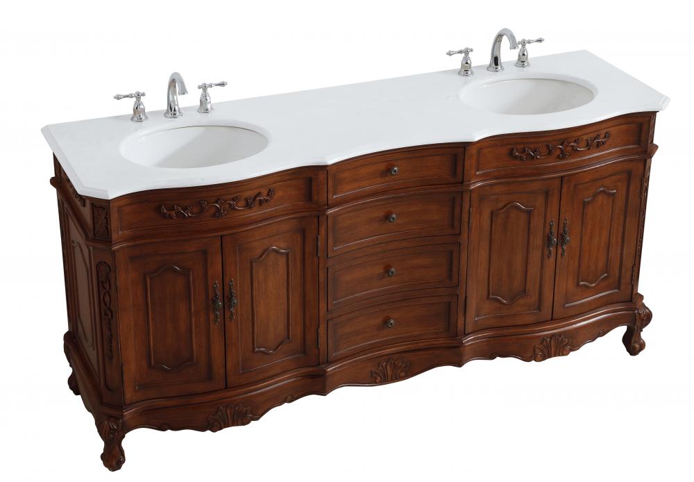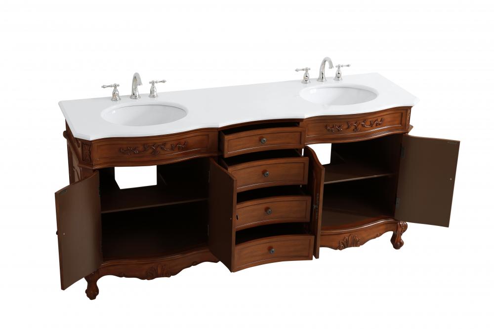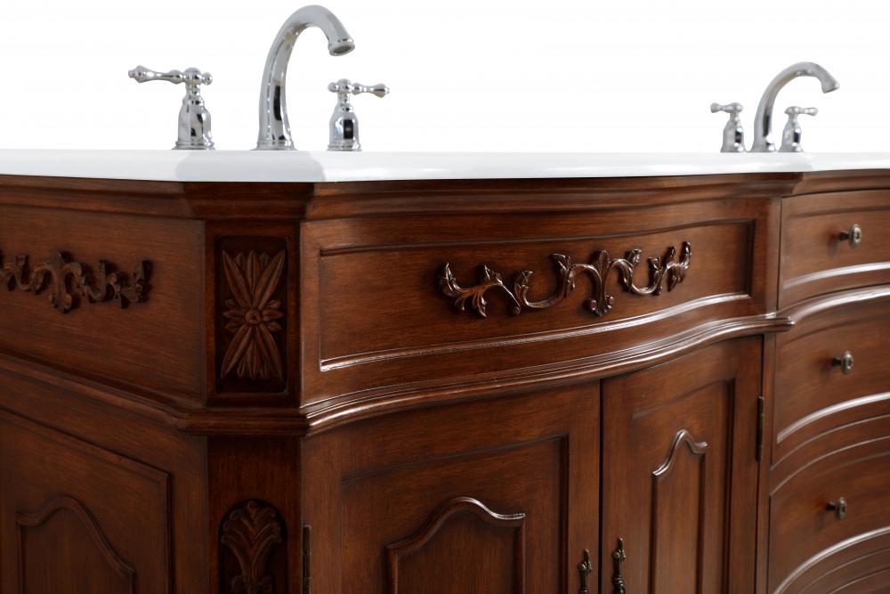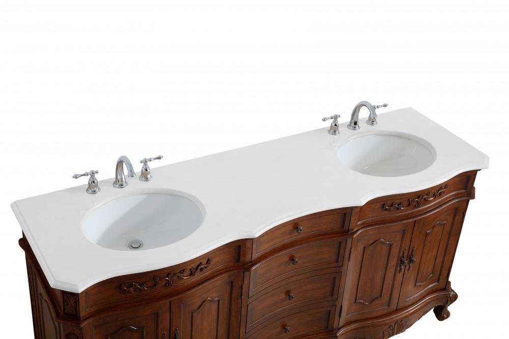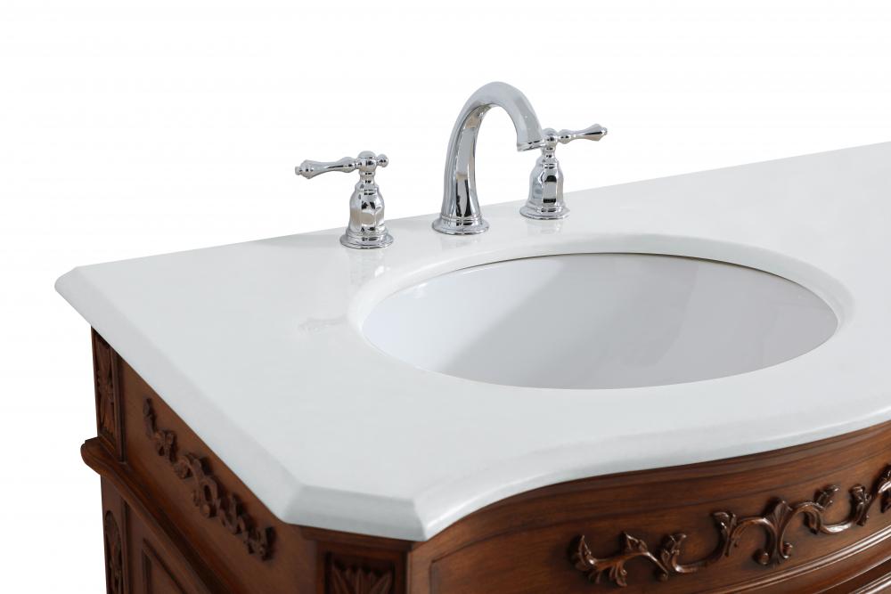 This superb balance of timeless tradition and opulent beauty in a engineered marble-topped vanity will certainly enhance the aesthetics of any home or office bathroom! Featuring an ivory white durable engineered marble countertop complimenting the hand painted cabinet with a delicate carved floral design, stands on stylishly carved solid wood French scroll feet. Don't let the design fool you, the engineered marble countertop and porcelain undermount sink allows for space to get ready, while the antique bronze hardware allows you to discover storage spaces with ease. You and your guests will marvel at this vanity that will both store away your bathroom essentials and enhance the aesthetics of your room.