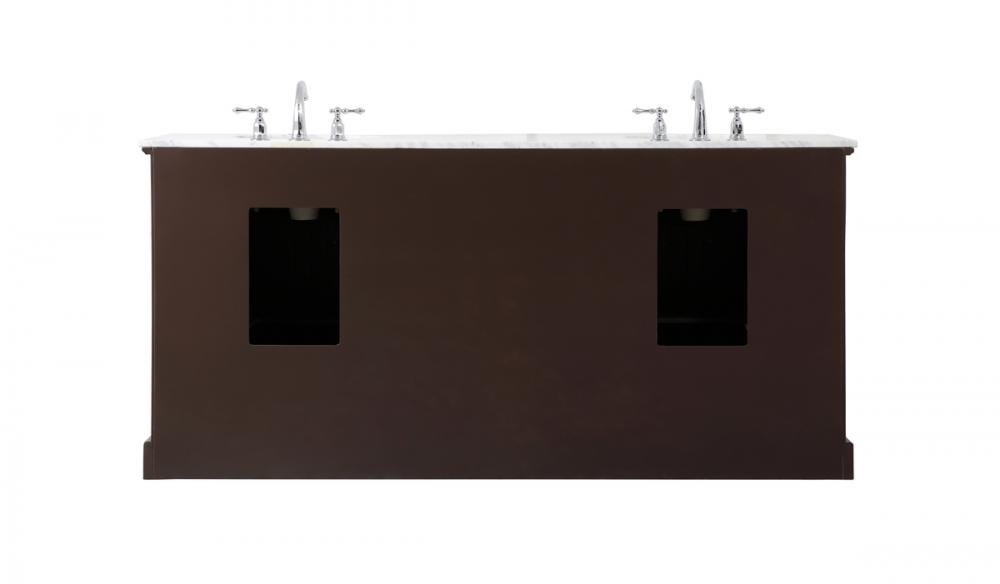 Clean lines and classic form can truly add a fresh look to your bathroom or powder room. This vanity, complemented by round hardware, will surely charm you with its confident style and subtle charisma. This vanity can store all of your bathroom toiletries, from extra towels to make up essentials. The vanity is crowned with carrara white marble and includes a porcelain undermount sink--adding both function and form that will truly amaze.