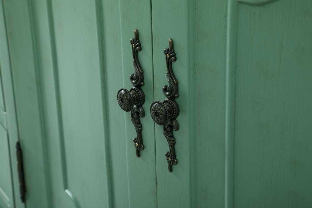 designed with cabinet doors attached to magnetic latches to secure the door shut