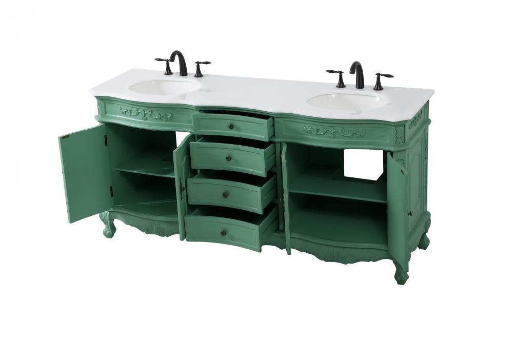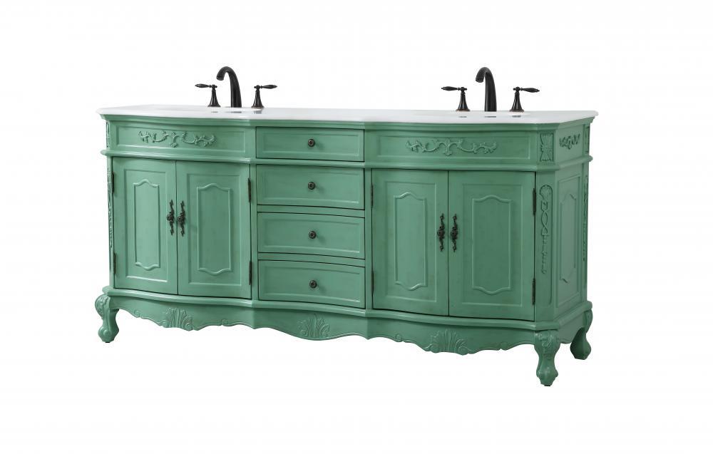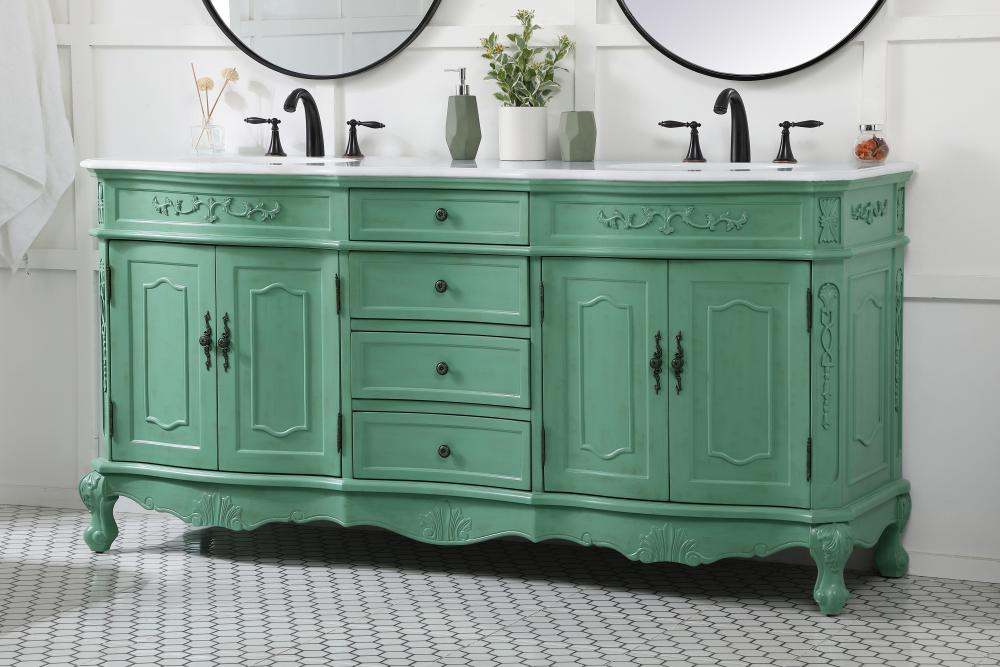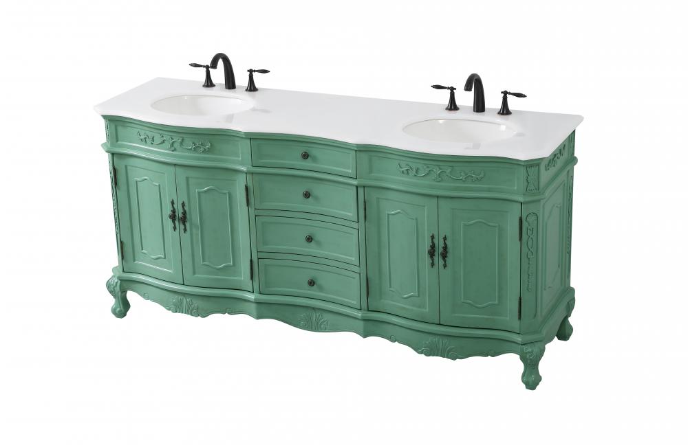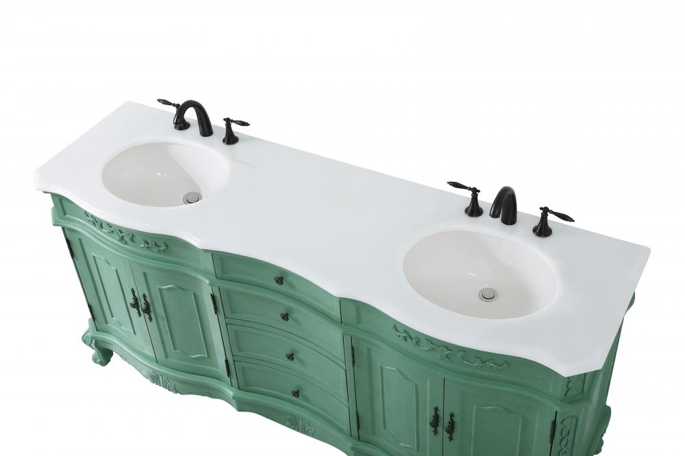 72 inch double Bathroom vanity in vintage mint with ivory white engineered marble