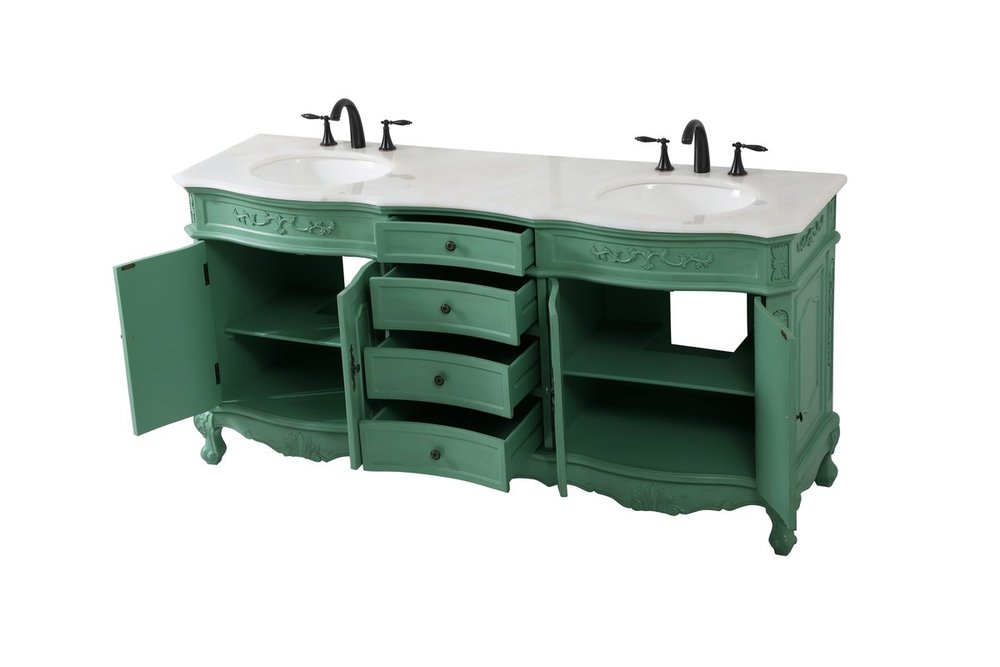 Create a refined and relaxing bath space with this traditional design vanity, presenting its ornate lines. This vanity, crafted of solid poplar wood and engineered wood panels, provides ample storage within its soft-close cabinet door, accentuated with metal hardware. Rounding out the design is an off-white marble with some brown veining in the stone. Comes with a white porcelain under-mount oval sink. Ships fully assembled.