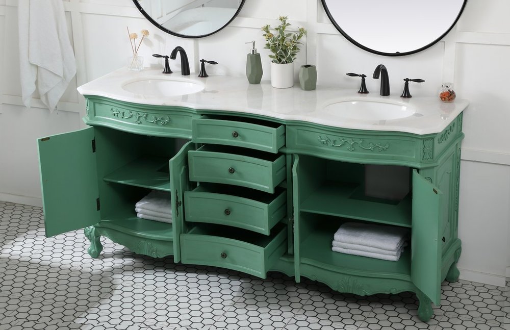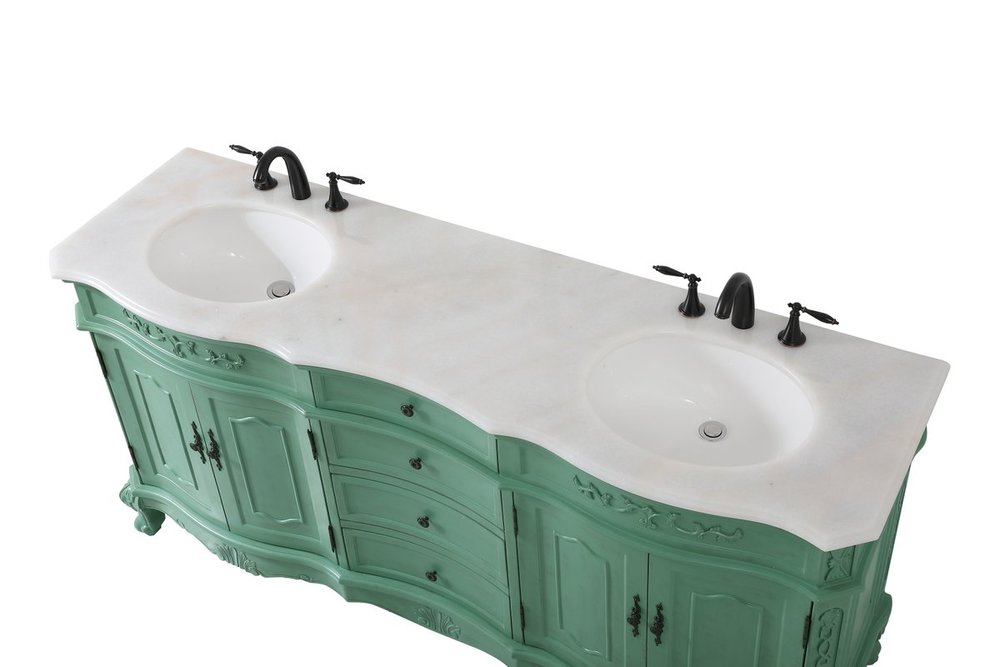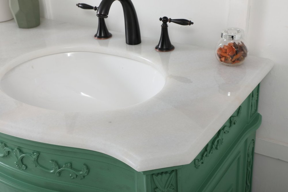 Comes with an off-white marble top with slight brown veining and bevel edge design, please note that due to the natural characteristics of the stone, the color and/or pattern of each countertop may vary from the pictures.