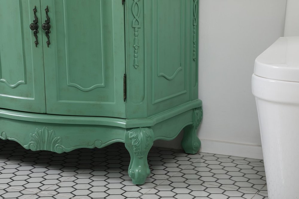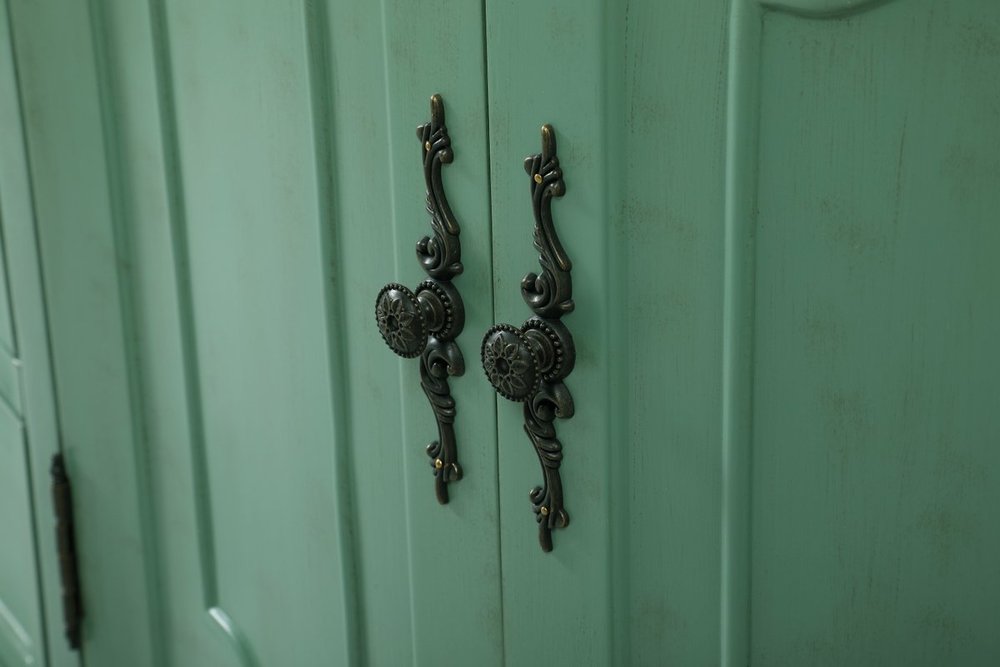 Hand painted in vintage mint finish with distress paint application