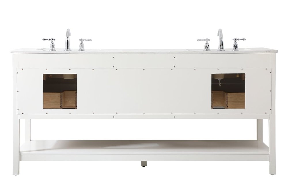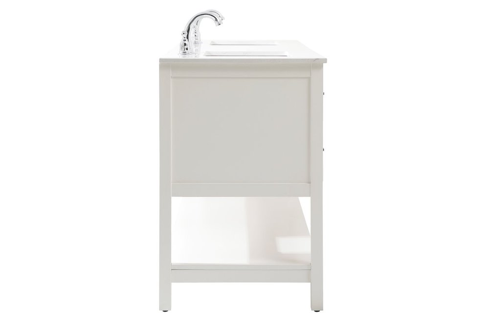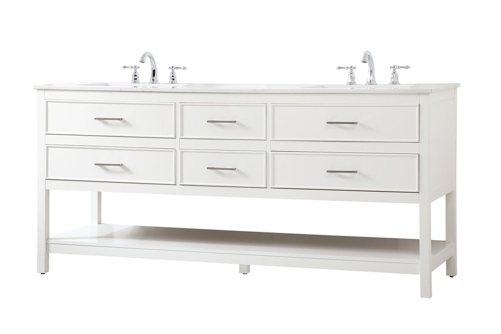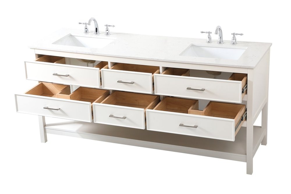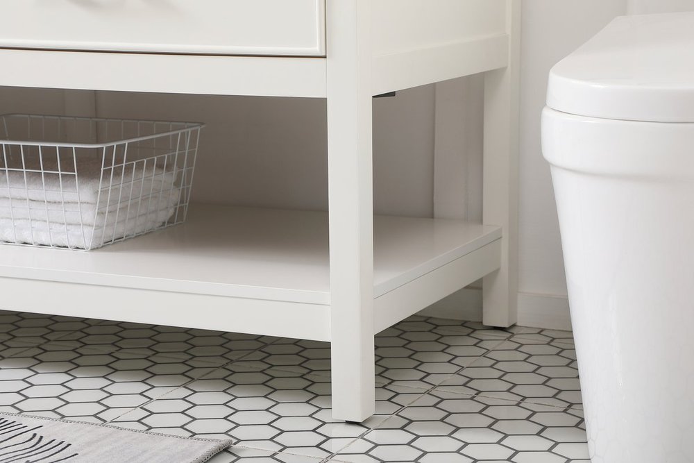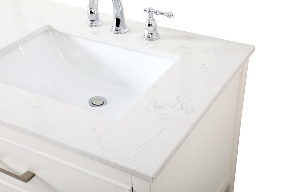 Make the most of your space with this traditional style bathroom vanity. Complements well with many aesthetics with its beautiful finish, calacatta engineered marble countertop, and the contemporary slender handle bar that sits on six functional drawers with soft closing mechanism, allowing you to store an assortment of bathroom essentials. The lower shelf makes it the perfect space to hold new towels for your guests. This compact vanity ensures both form and function in your bathroom or powder room for you and your guests.