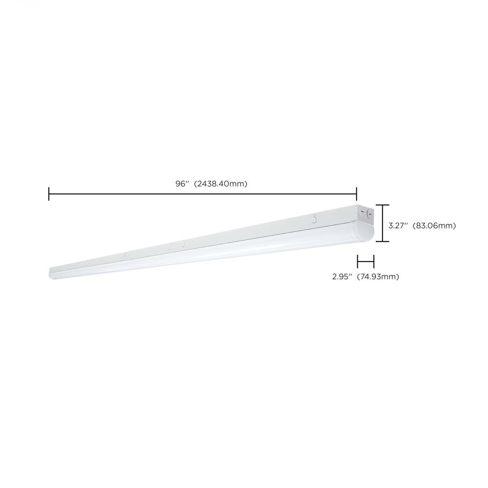 SATCO NUVO's 65-703R1 8-foot LED Linear Strip Fixture offers adaptable lighting for diverse applications. This field-selectable fixture provides wattage options of 60W, 70W, or 80W and color temperature settings of 3500K, 4000K, or 5000K. With a univer