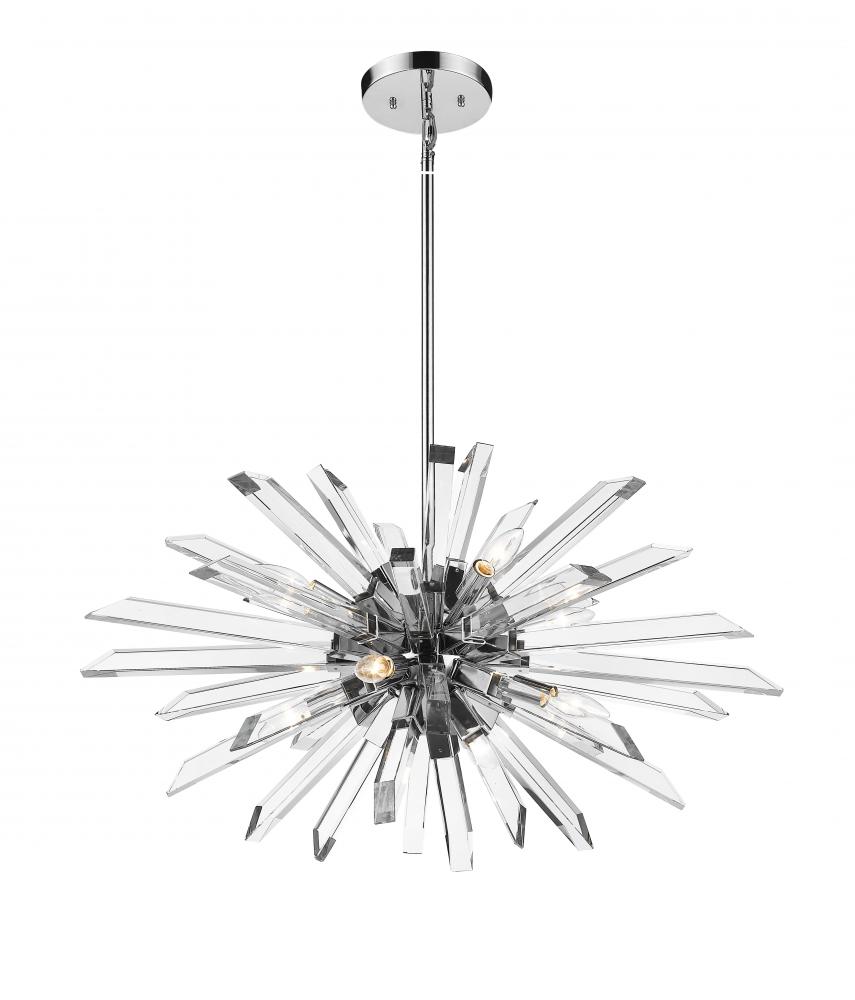 An explosion of beautiful crystal arms extend forth in the Burst collection of crystal fixtures, like stars in the night. The reflective nature of the clear crystal and sleek Chrome finishes make these fixtuers sparkle intensely.