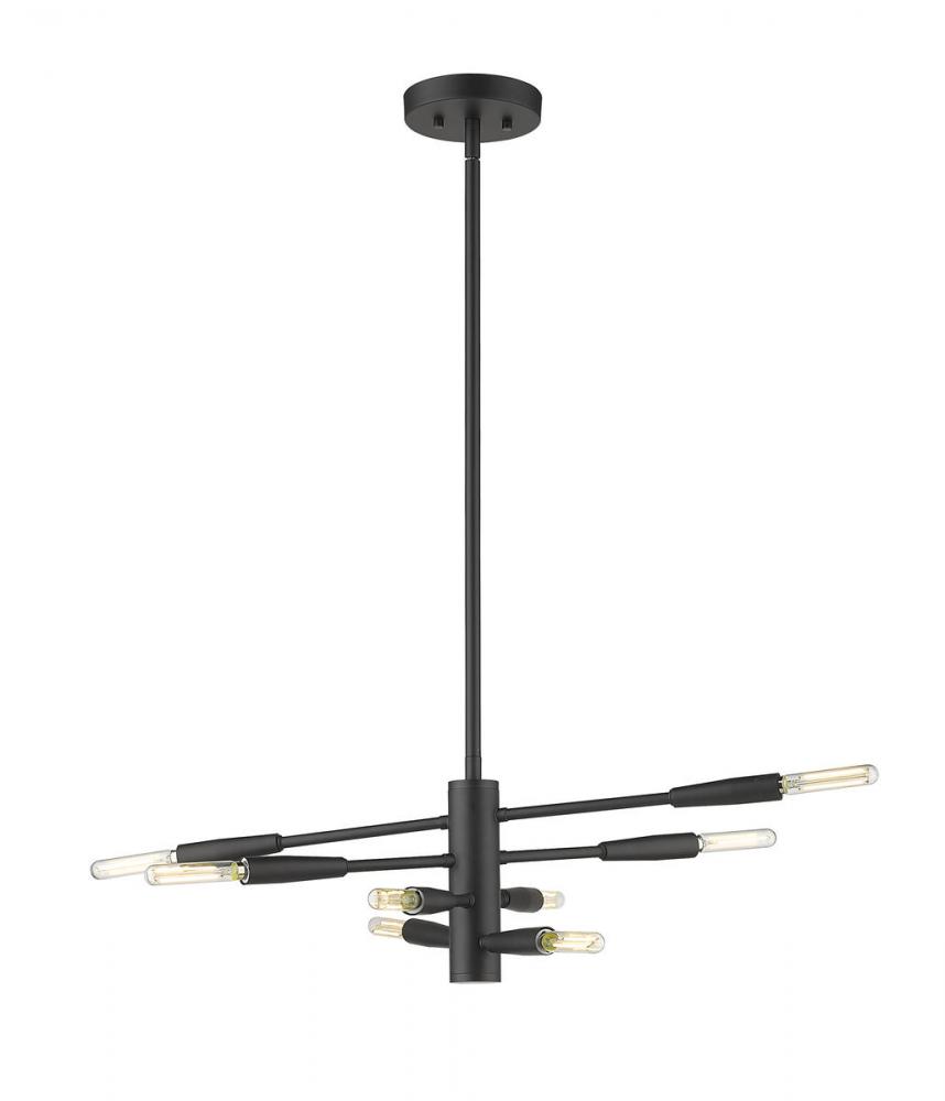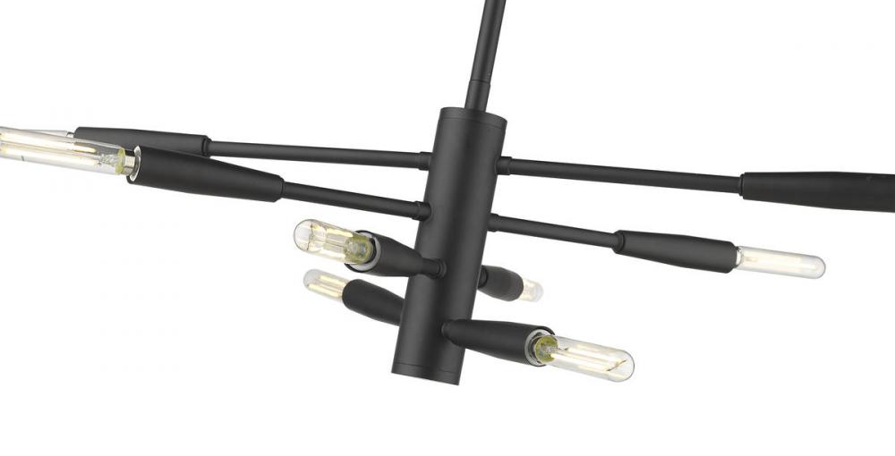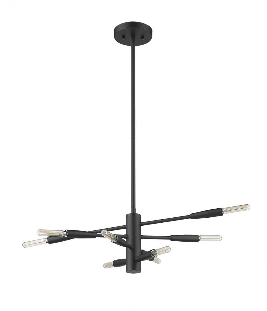 The modernistic aesthetic of space sneaks in to add a dynamic vibe to this chic eight-light chandelier from the Ascension collection. Make any space a central focus with a fixture crafted of bold matte black finish steel and dressed up with slender baton-style arms that may be rotated to achieve a customized look. This chandelier is a superb addition to both casual and semi-formal contemporary spaces.