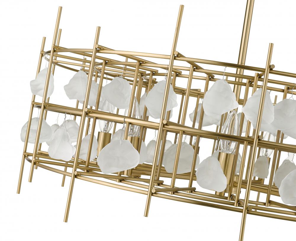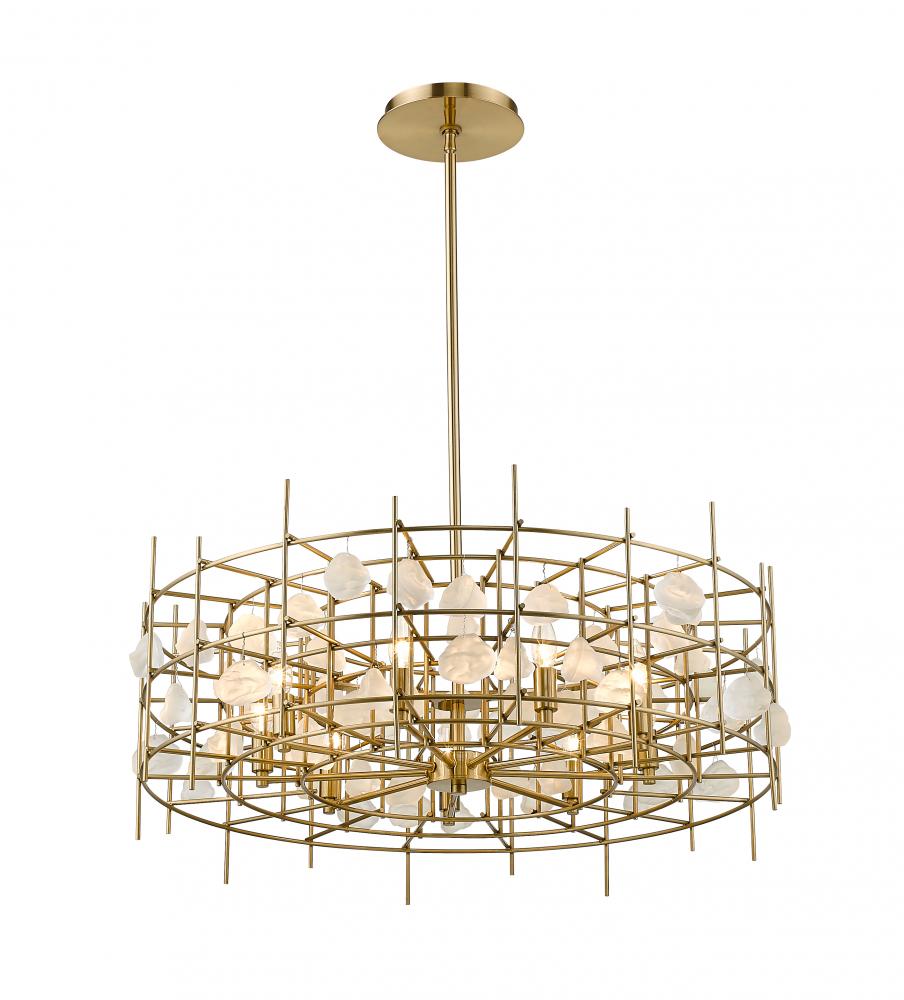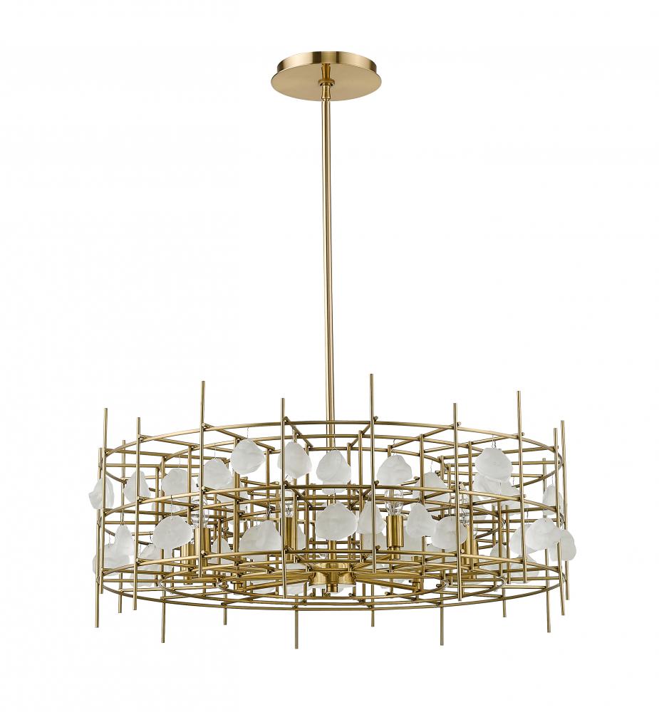 Light up a dining room, living room, or foyer with the cool, contemporary allure of this aged brass chandelier. An eye-catching array of linear metal accents surround nine shining bulbs for a sophisticated design that radiates modern elegance.