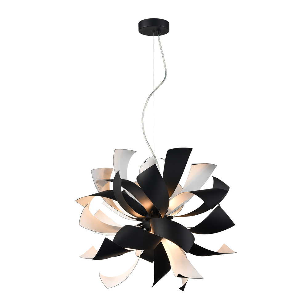 9-Light Decorative Floral Windmill Styled Matte Black Chandelier.