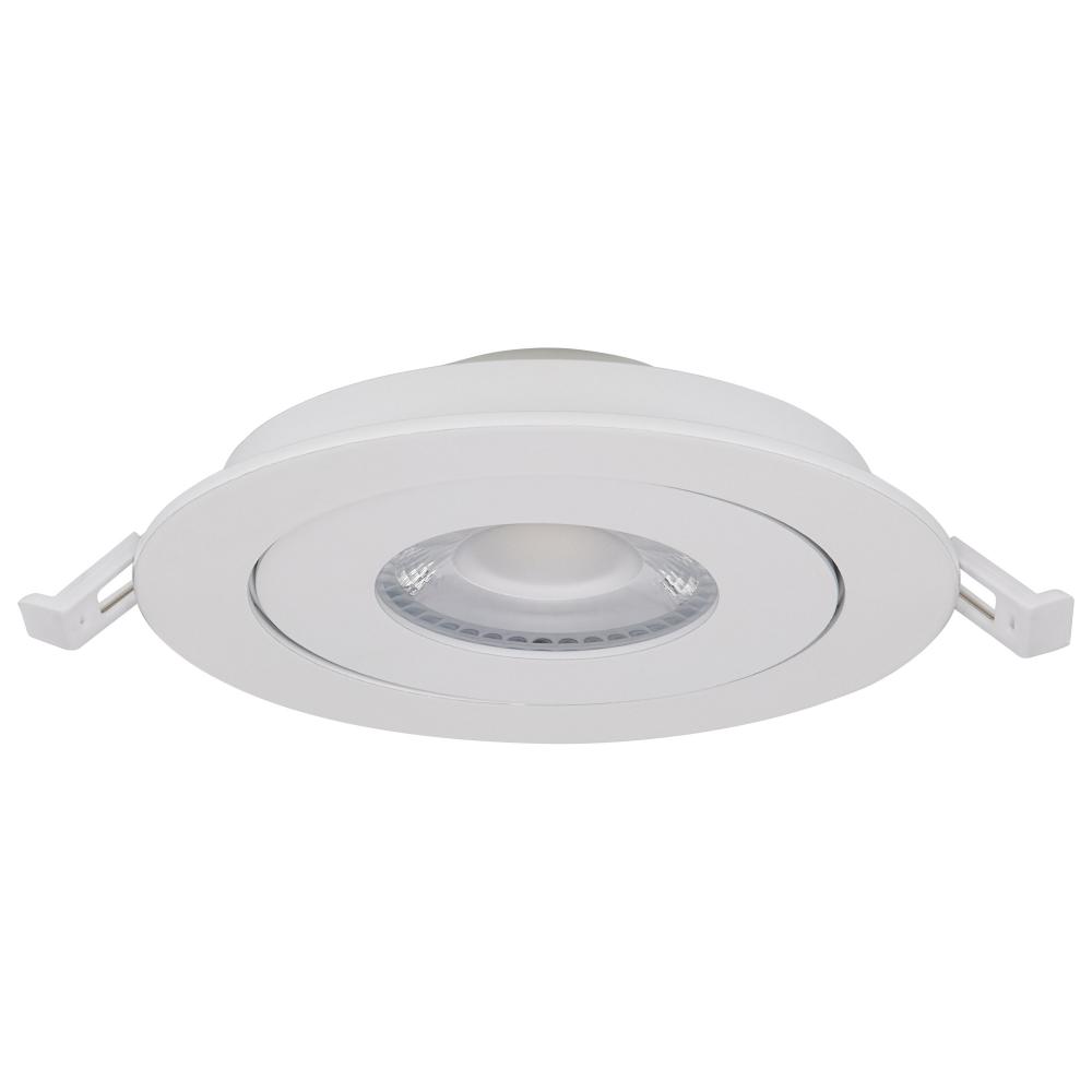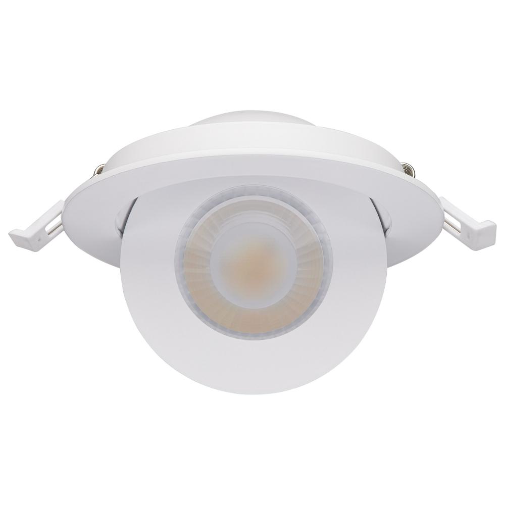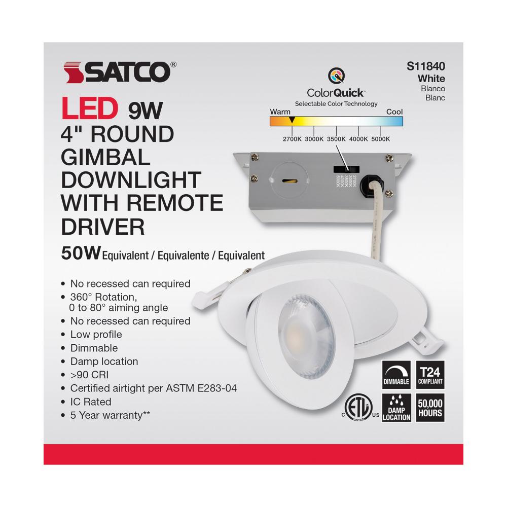 The white, four-inch round Satco S11840 gimbaled downlight delivers multiple advantages to any general recessed lighting project. Our ColorQuick technology allows the user to choose the color temperature from five different settings and brings the perfect