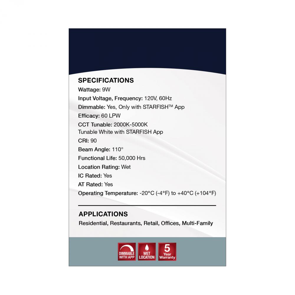 SATCO NUVO's S11561 LED Slimfit Downlight with STARFISH technology are the ultimate choice for smart lighting and ambiance control. Download the STARFISH app to customize any tunable white color temperatures from 2000K warm white to 5000K natural light