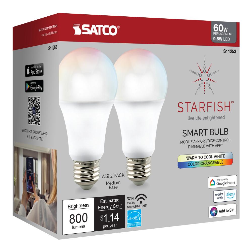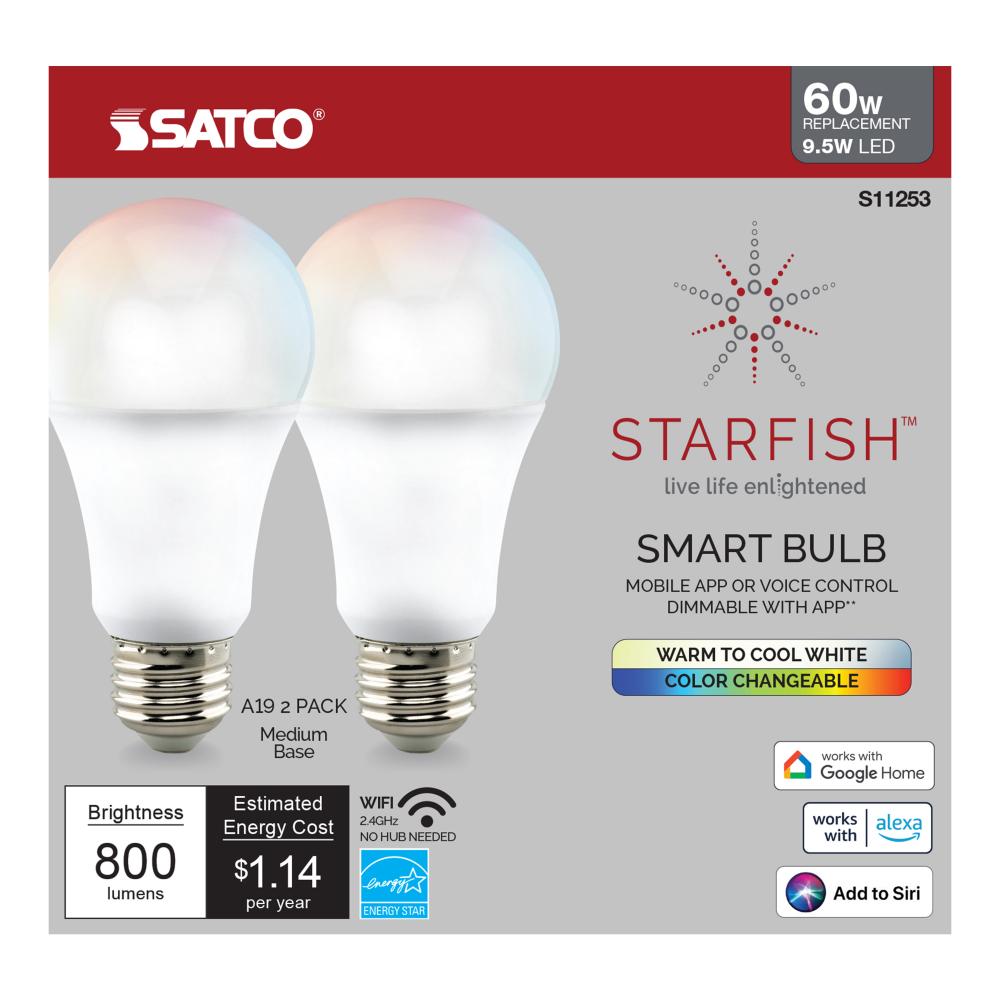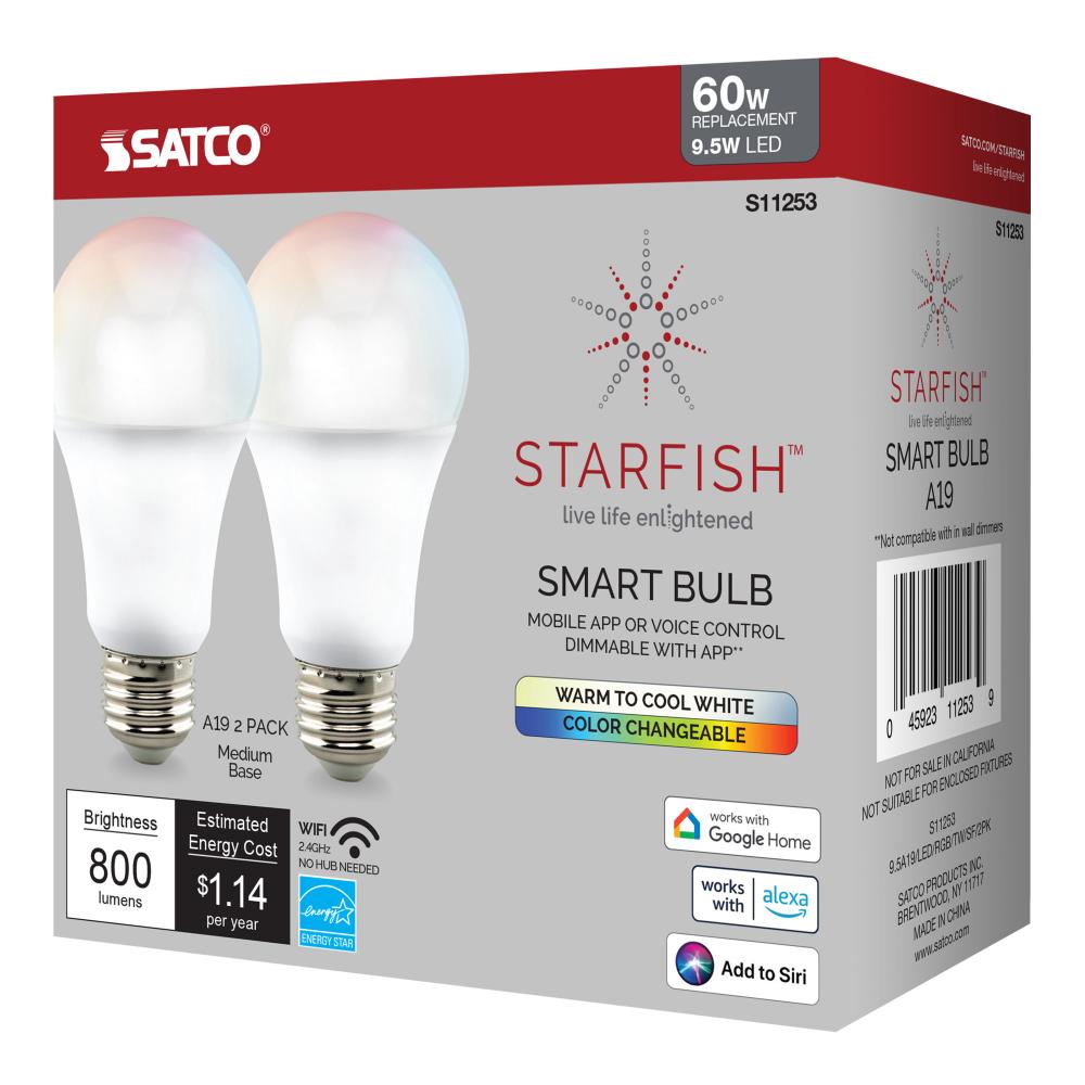 9.5 Watt; A19 LED; RGB & Tunable White; Starfish IOT; 120 Volt; 800 Lumens; 2-pack
